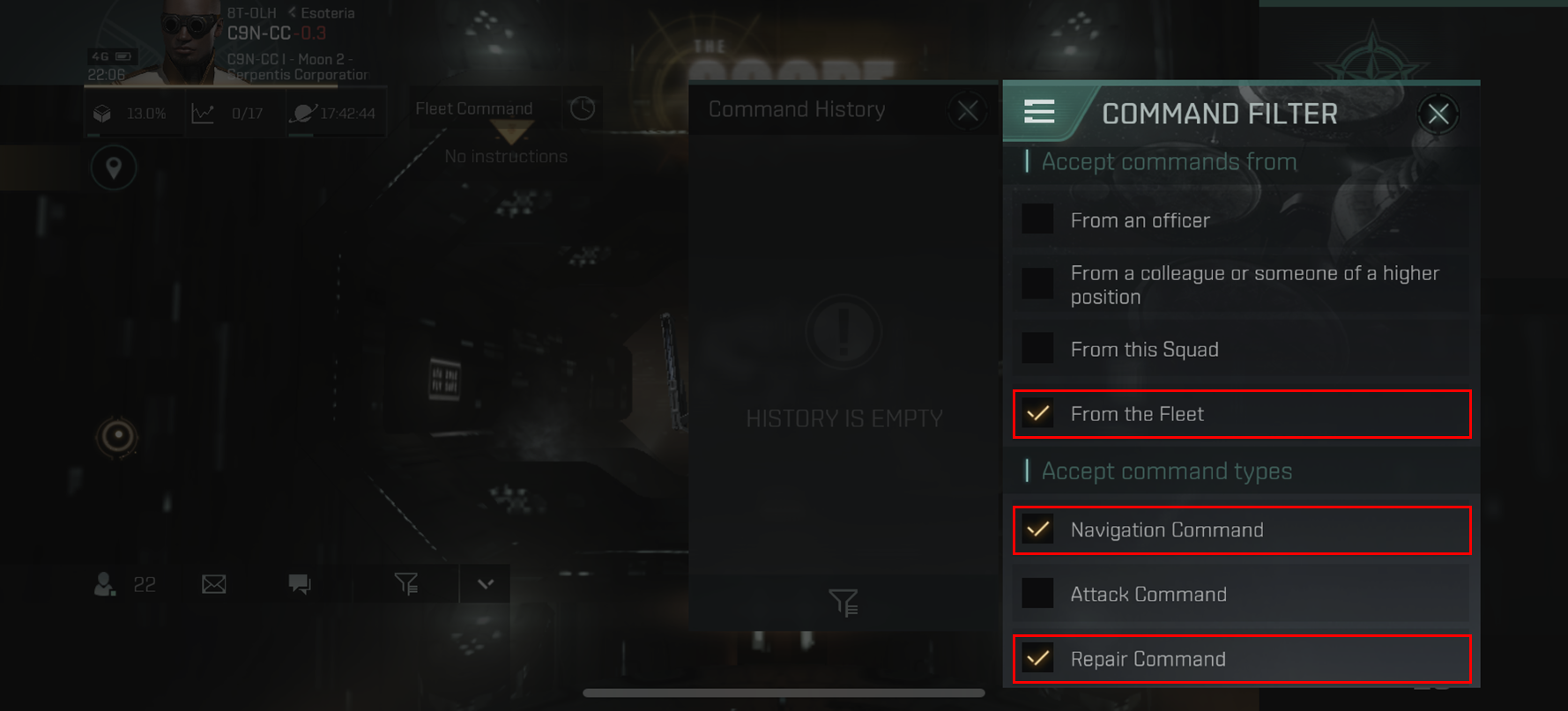 플릿에 들어가게 되면 Fleet Commander와 Squad Commander의 명령을 받게 됩니다.