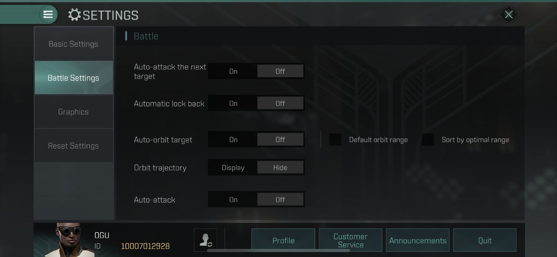 로지 이기 때문에 자동 공격할 일은 없겠지만 Auto-orbit을 켜 두고 리모트 실드를 사용하면