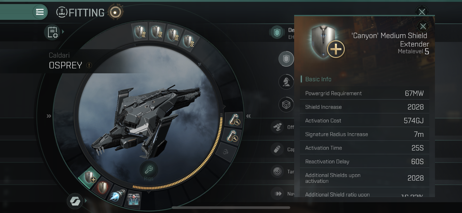 마지막 Low Slot에는 Shield Extender를 장착하였습니다.