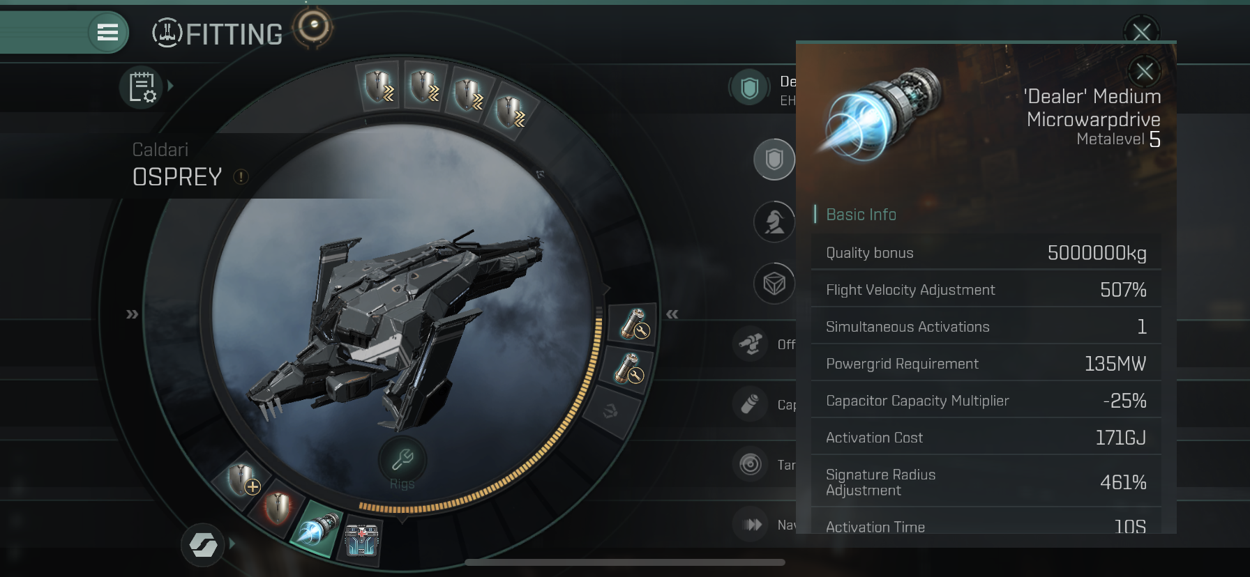Low Slot 두번째에는 Medium Microwarpdrive를 장착해줍니다.