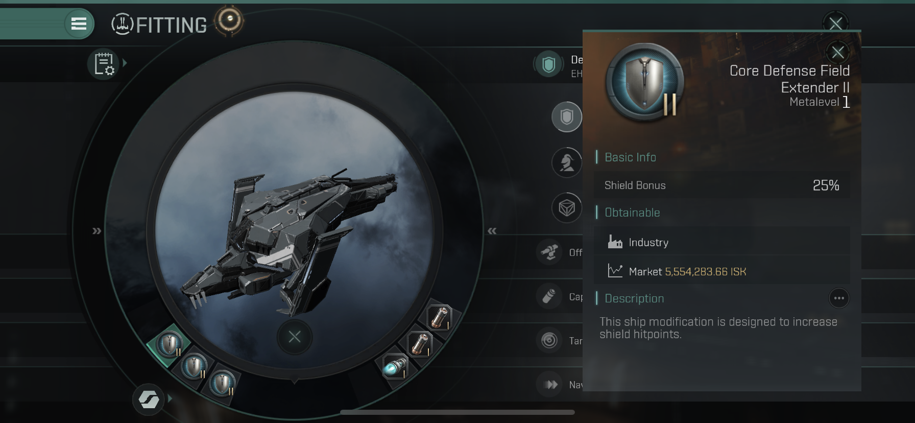 Combat Rig에는 Core Defense Field Extender II 두개를 달아주었습니다.