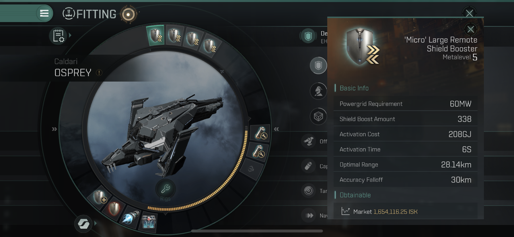 High Slot에는 'Micro' Large Remote Shield Booster 4개를 장착하였습니다.