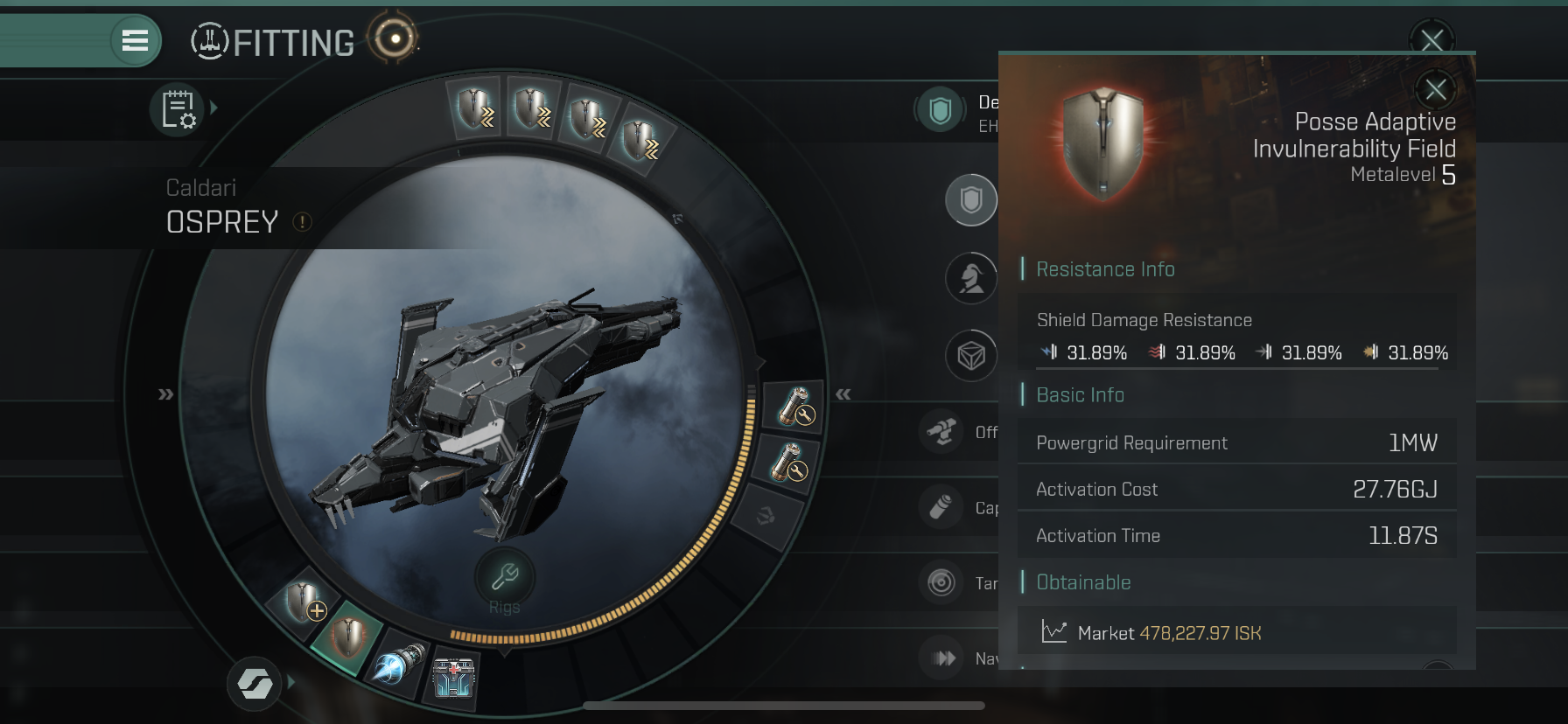 Low Slot 세번째에는 Invulnerability Field를 장착합니다.