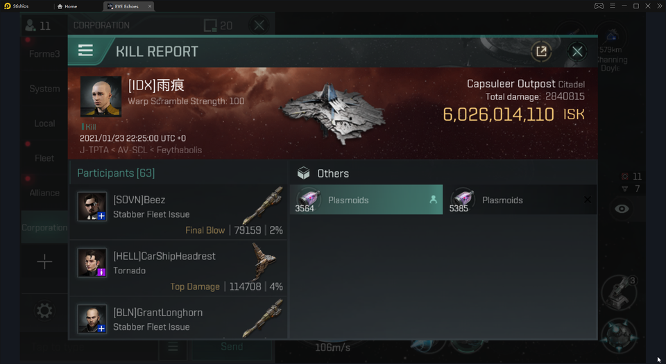 2021년 1월 19일 5시간이 넘는 전투 끝에 Sourther Coalition은 이브 에코스 최초로 코퍼레이션 시타델을 처치하게 되었고,