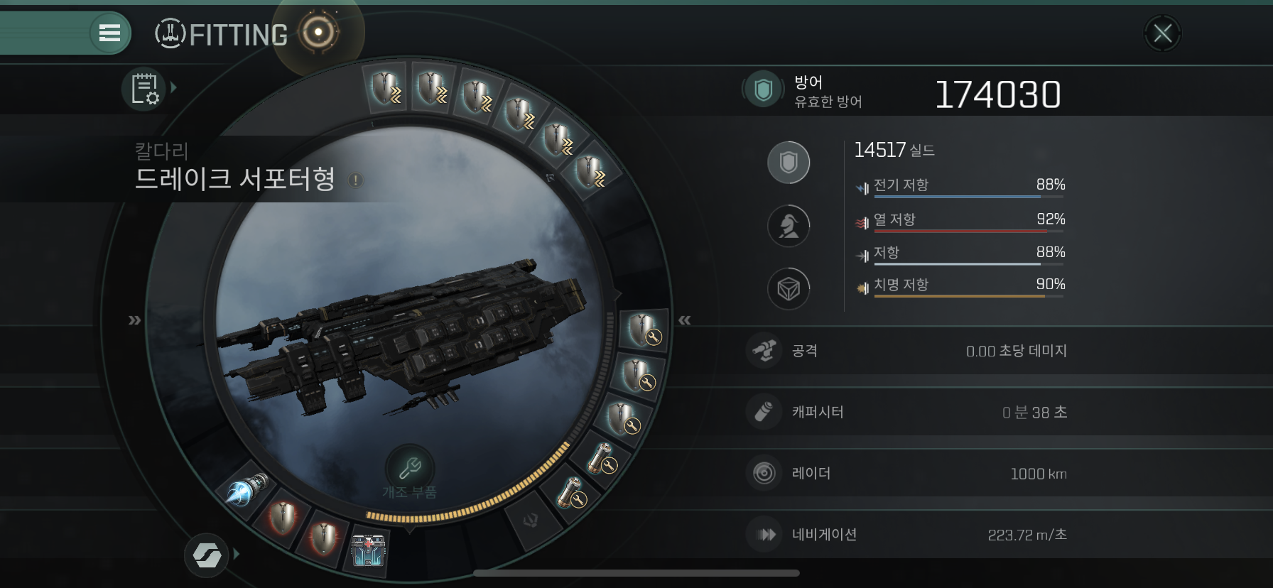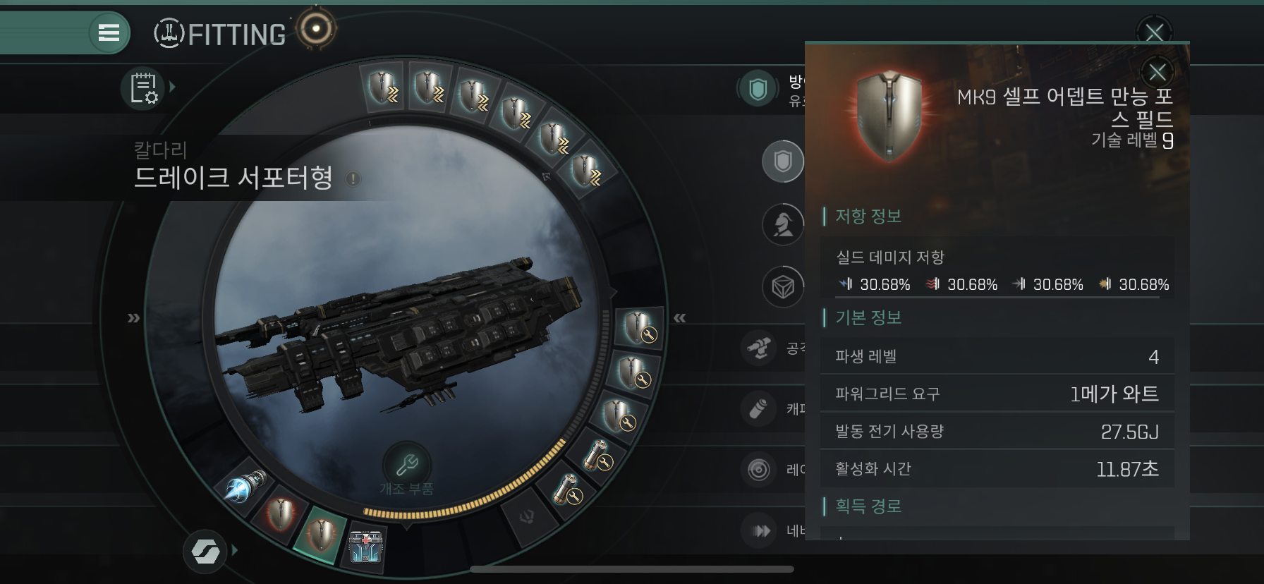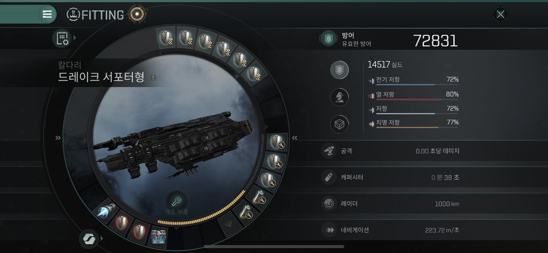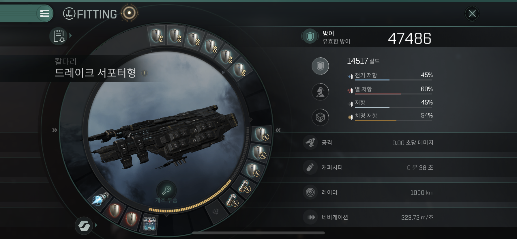 Drake Logistics는 크루저 함선인 Osprey에 비해 1.5배이상 쉴드량도 많고 저항력도 높습니다.