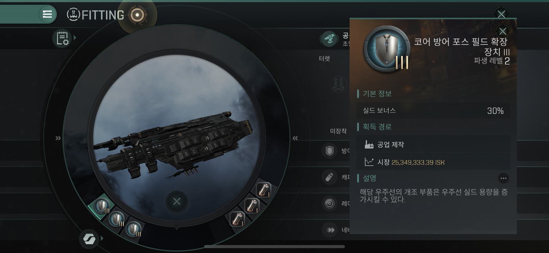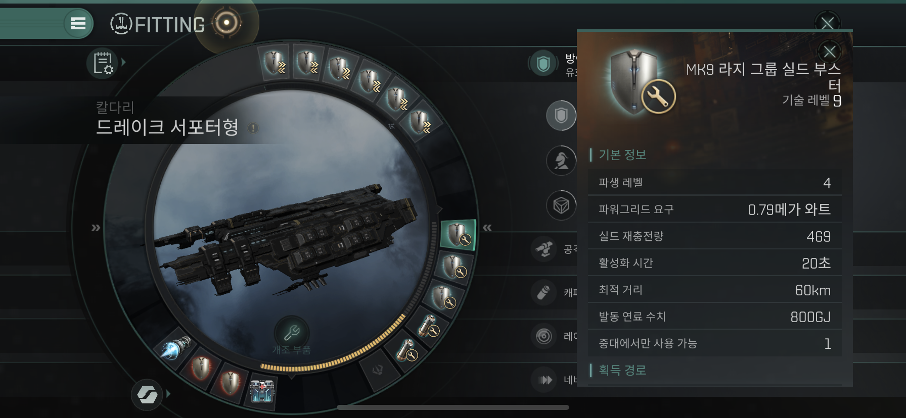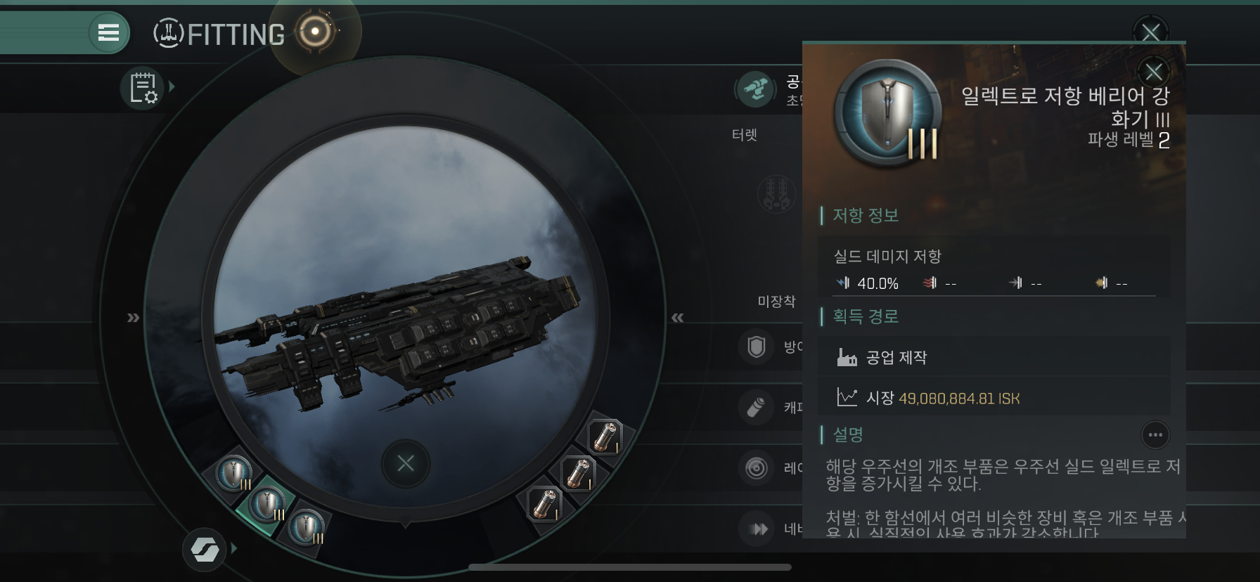 Mid Slot에는 Large Grup Shield Booster 3개를 장착해줍니다