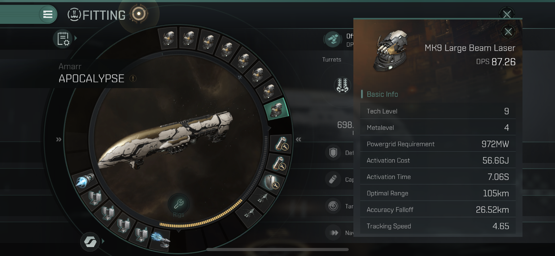 High Slot에는 MK9 Large Beam Laser 8개를 장착하였습니다.