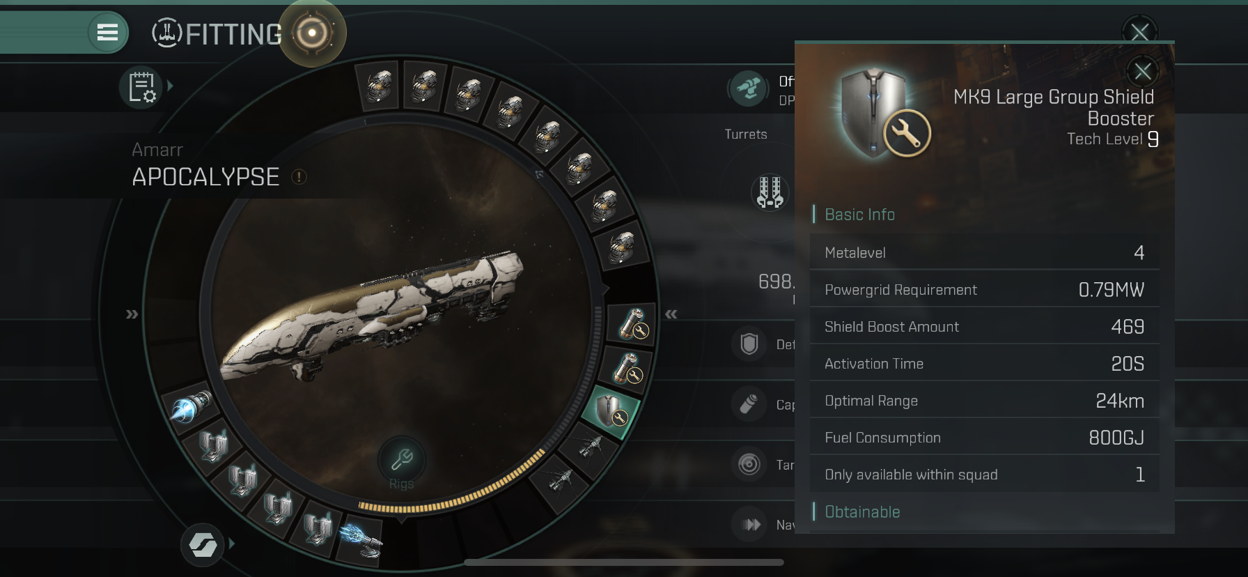 나머지 Mid Slot에는 MK9 Large Group Shield Booster를 달아주었습니다.