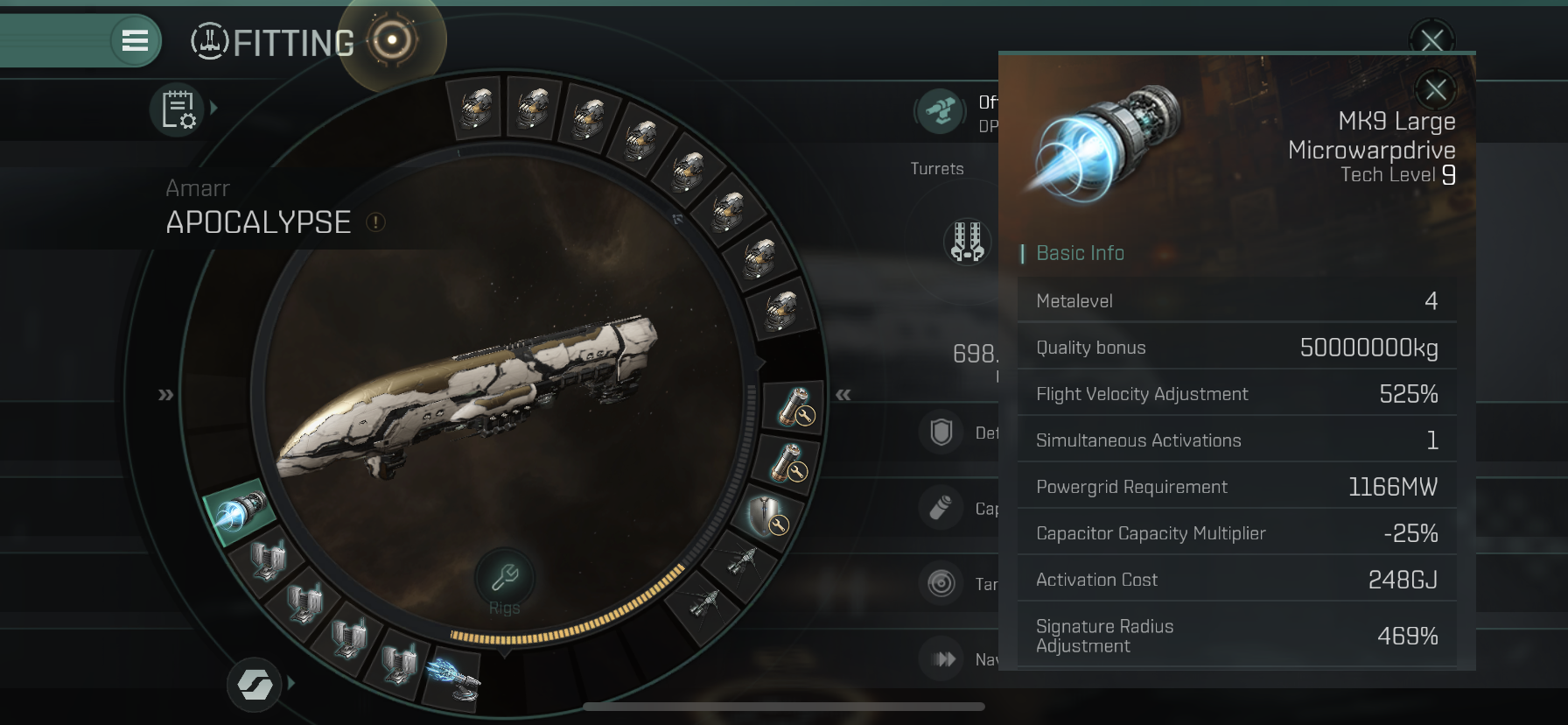 마지막 Low Slot에는 빠른 이동을 위해 MK9 Large Microwarpdrive를 장착하였습니다.