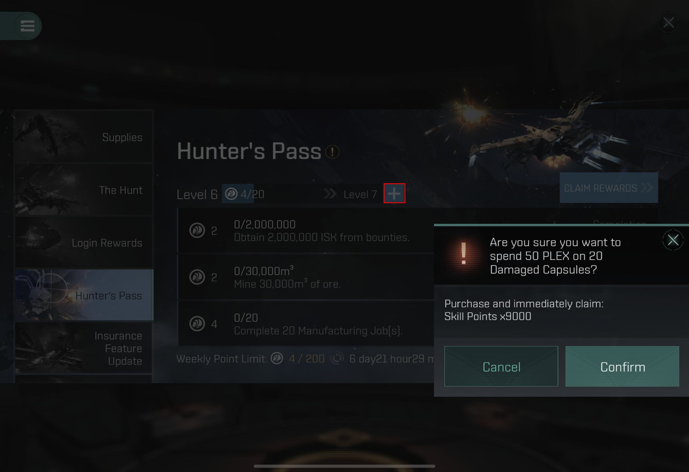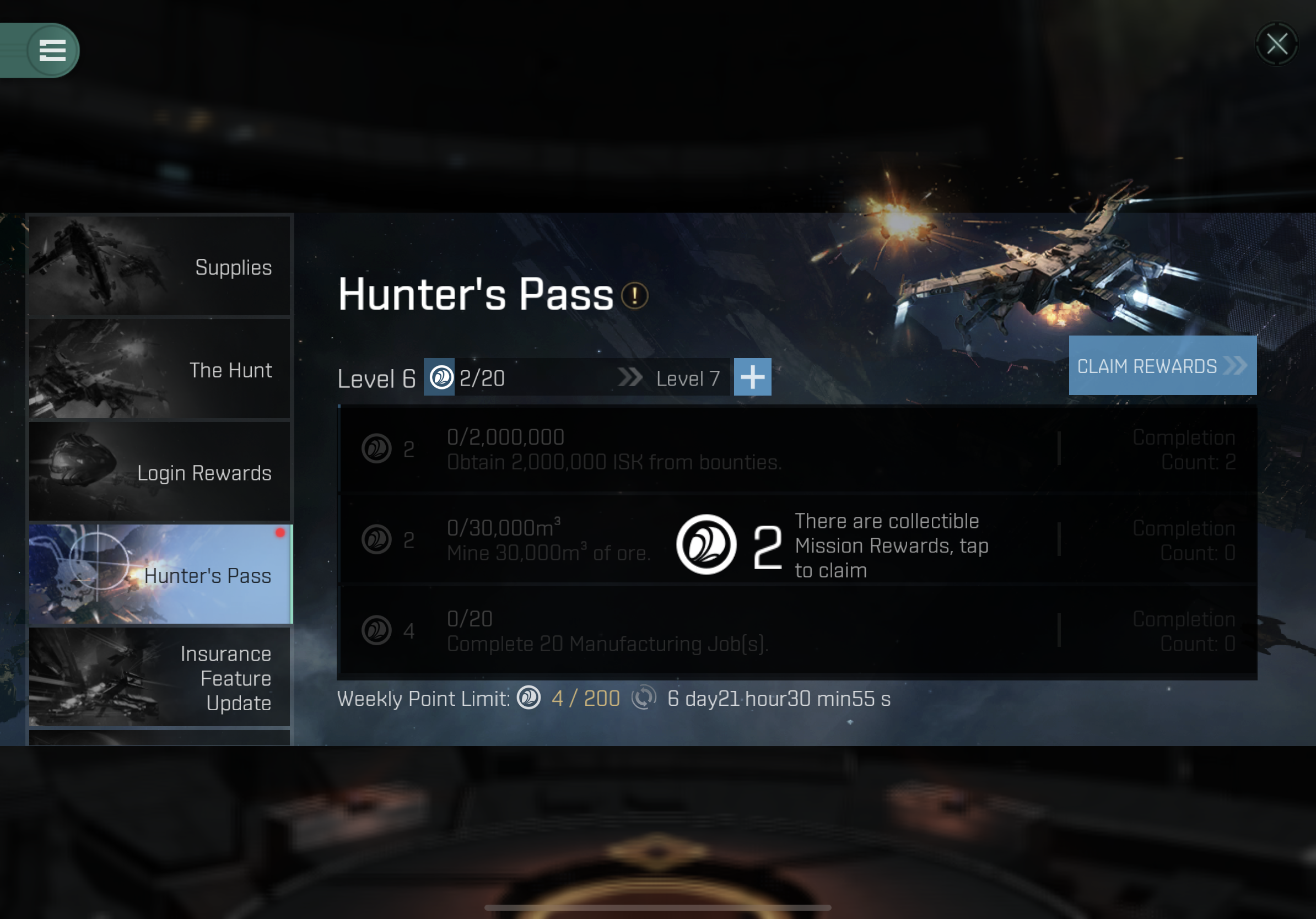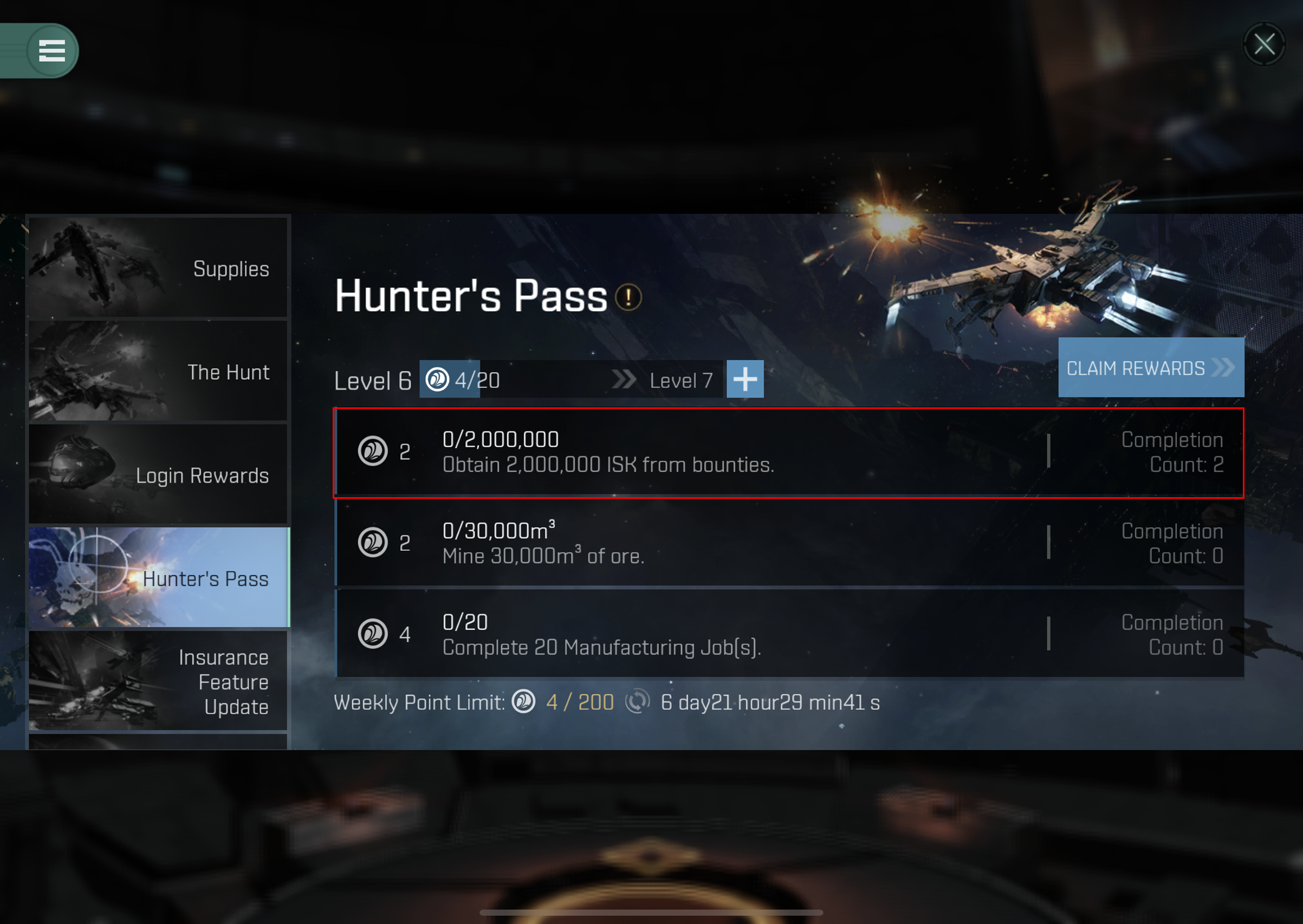 파일럿은 로그인 보상, 구매 또는 Hunter's Pass 미션을 완료하여 Hunter's Pass을 레벨 업 할 수 있습니다.