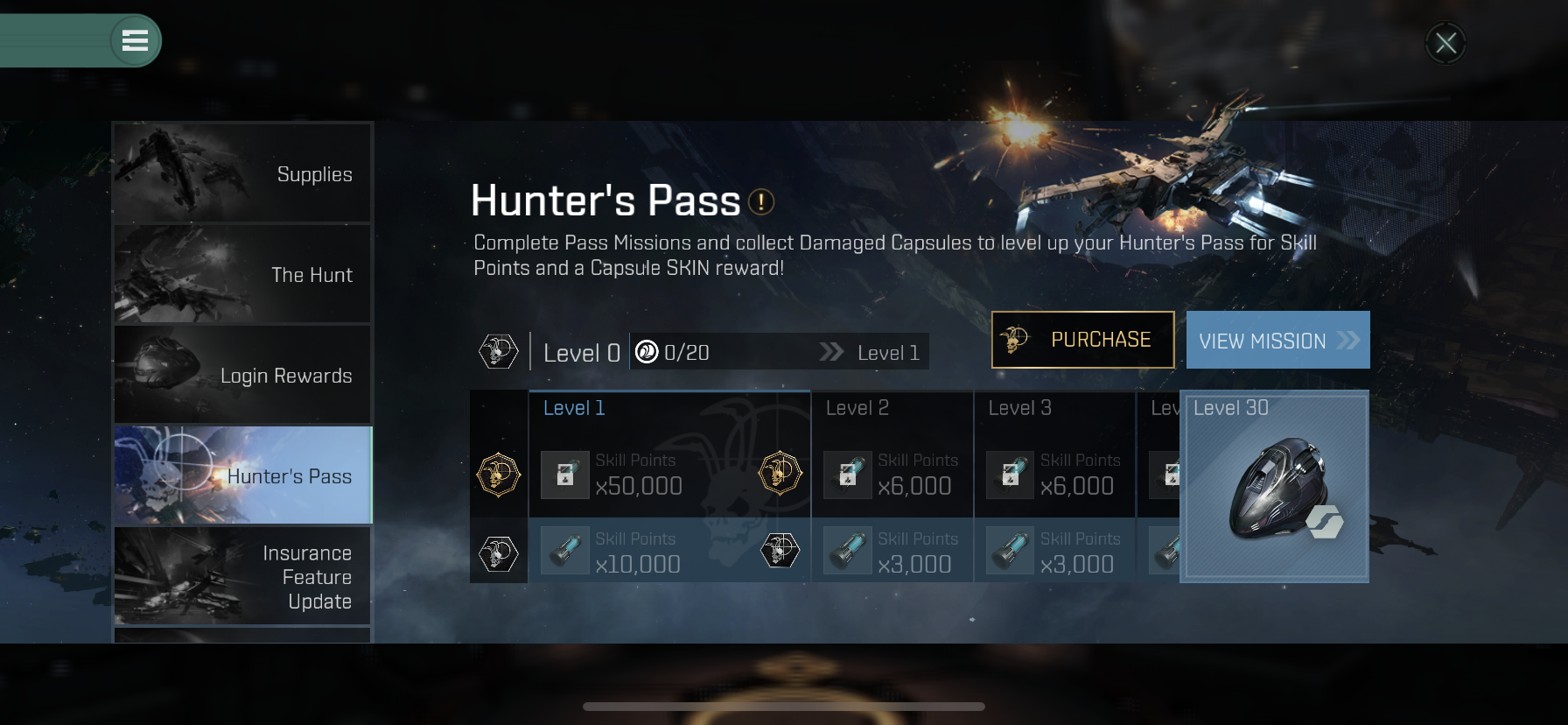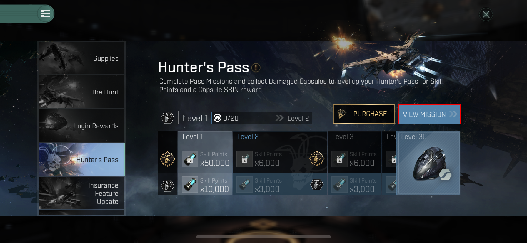 Hunter's Pass 창에서 VIEW MISSION을 클릭합니다.