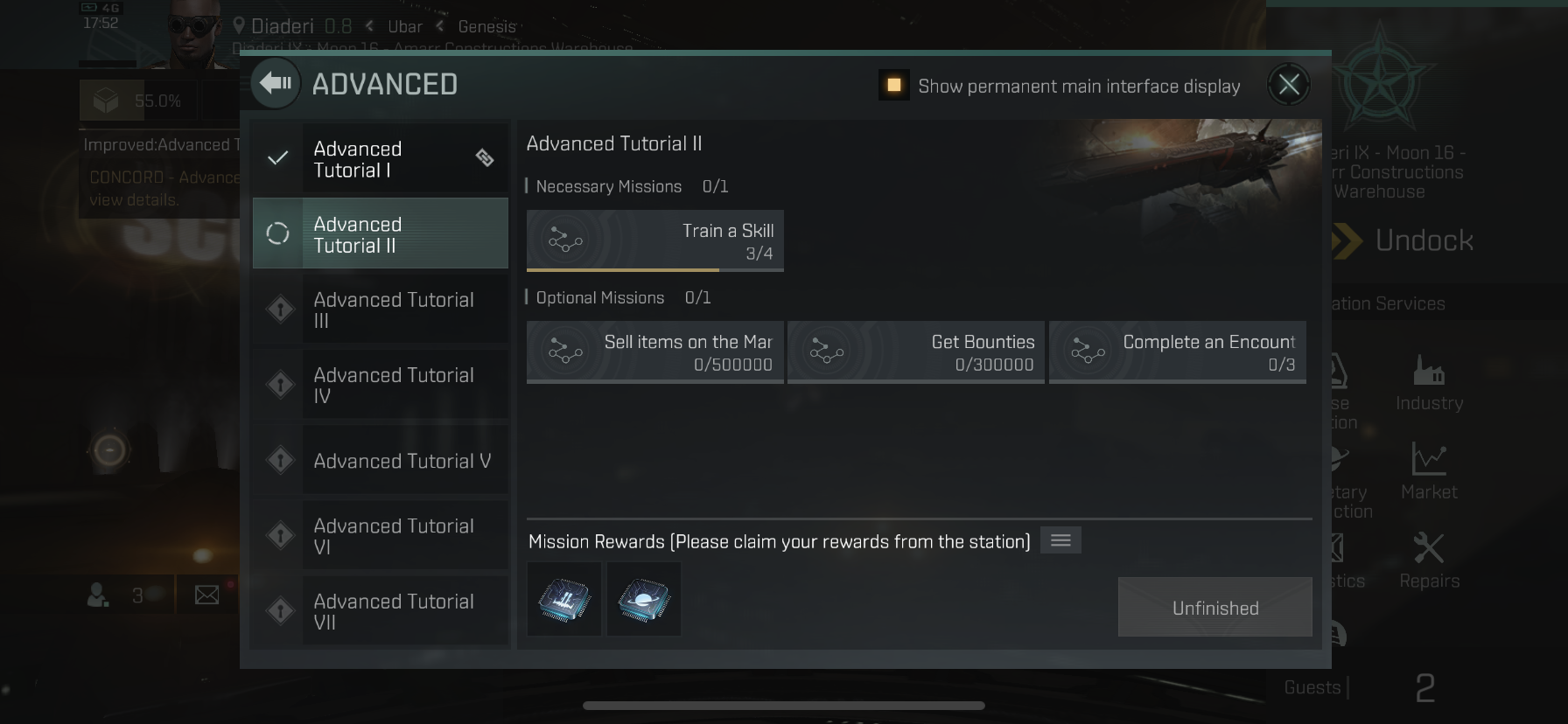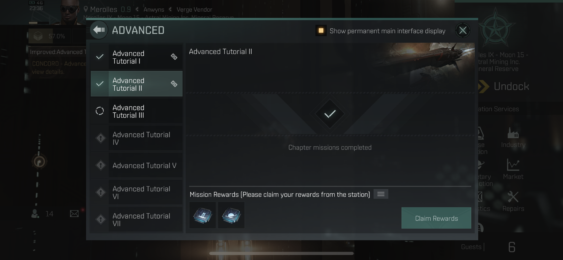 3번의 미션을 깨게되면 Advanced Tutorial II 이 완료된 걸 볼 수 있다.