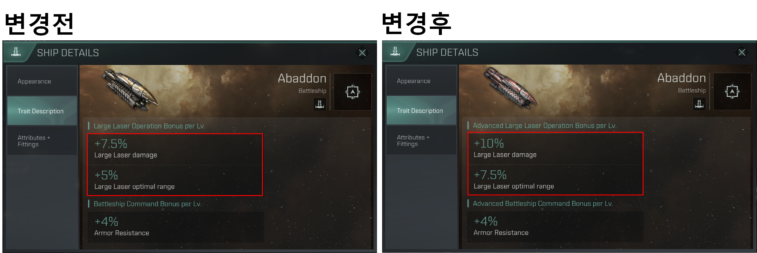 Advanced Large Laser Operation / Advanced Battleship Command로 변경되었습니다.