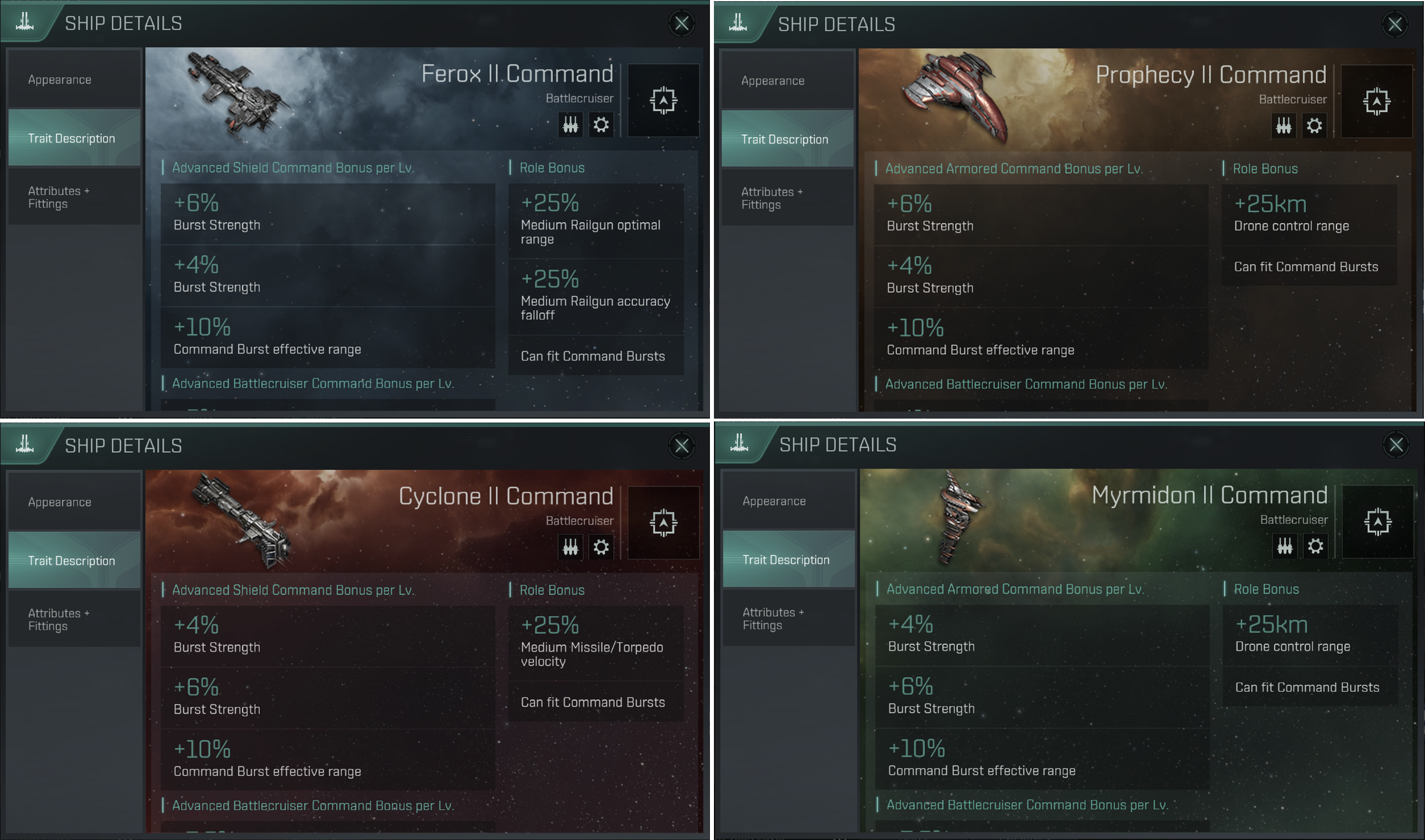 ㄴ (신규) Ferox II Command, Cyclone II Command, Prophecy II Command, Myrmidon II Command