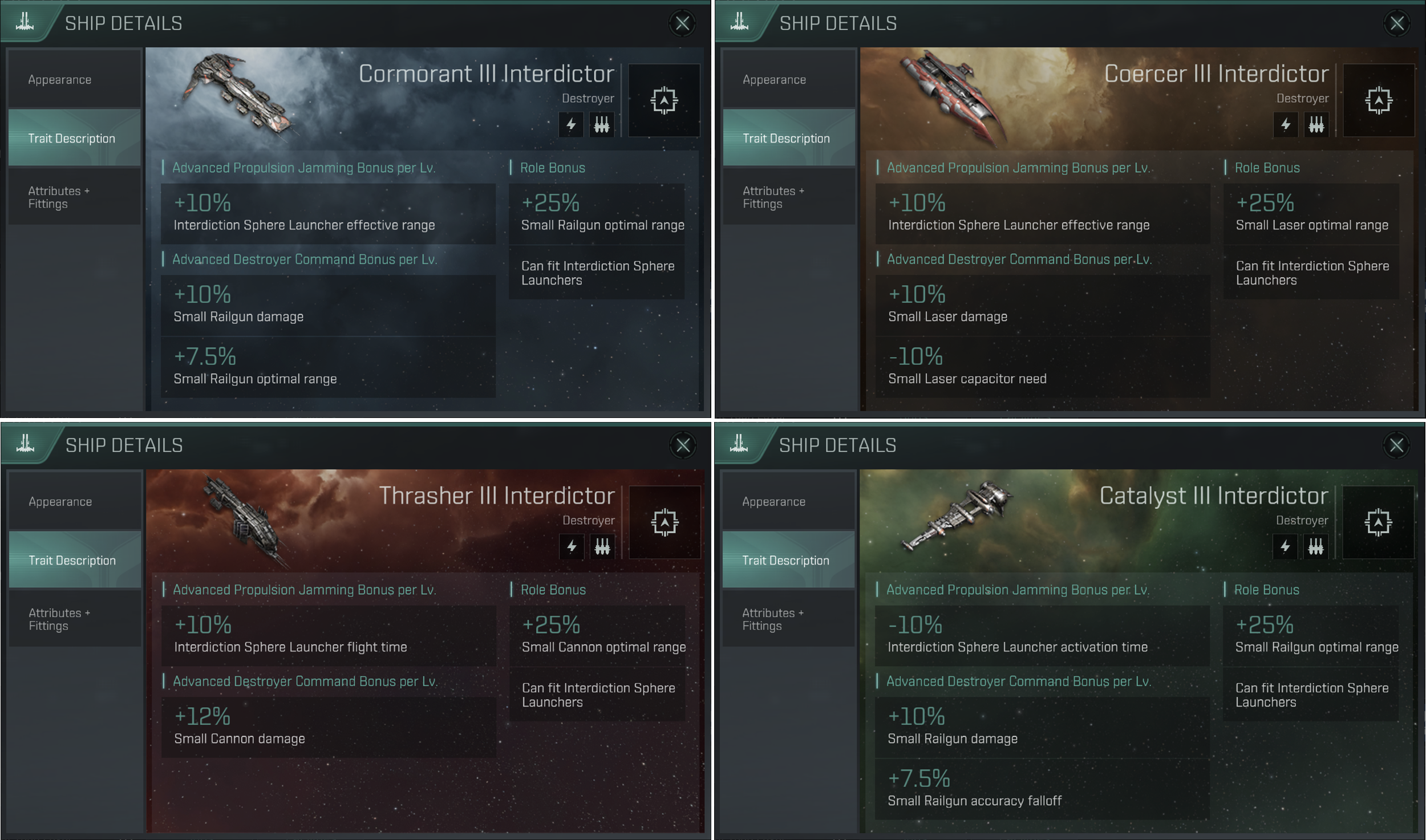 ㄴ (변경) Cormorant Interdictor, Thrasher Interdictor, Coercer Interdictor, CatalystI Interdictor