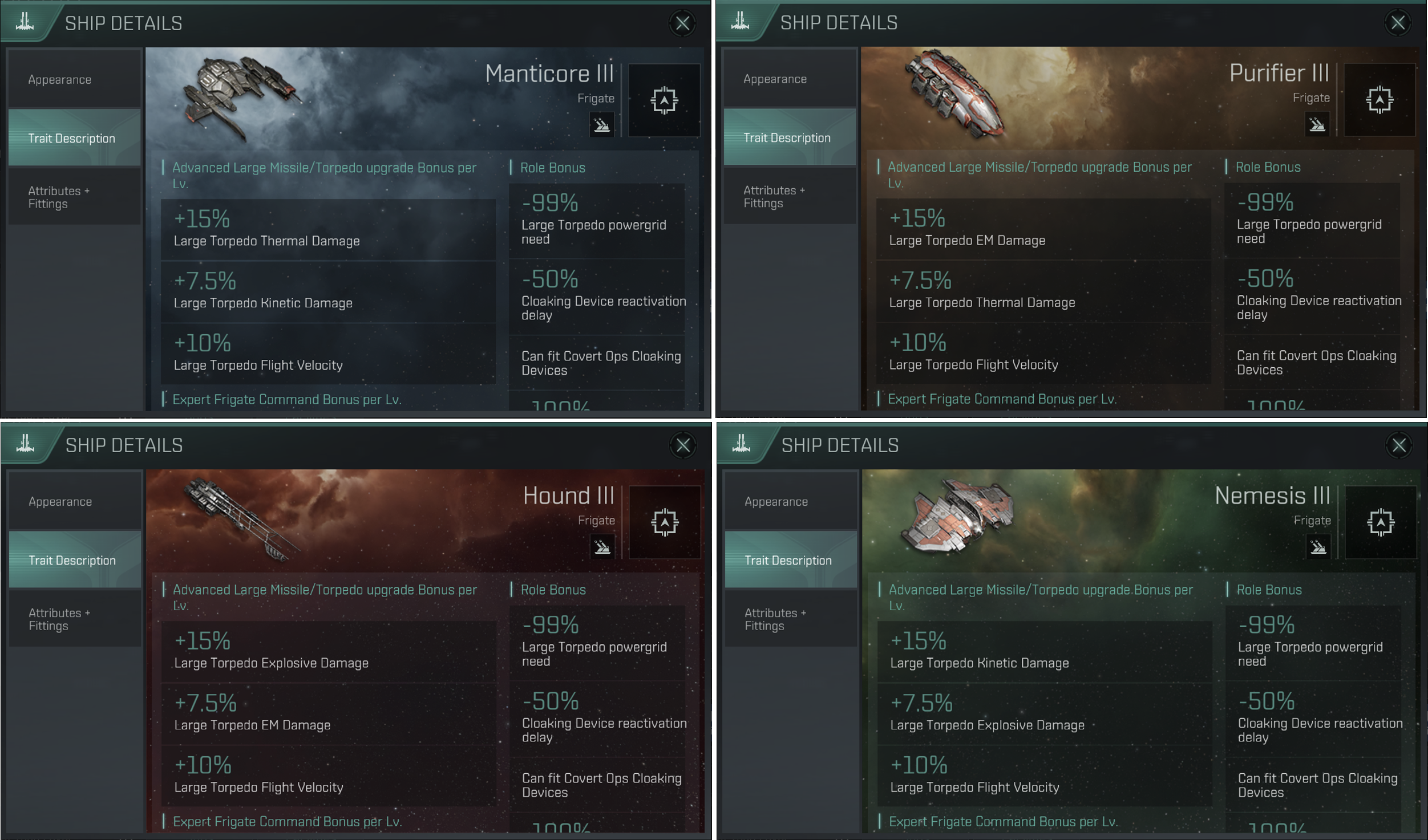 Manticore III, Hound III, Purifier III, Nemesis III 함선이 추가되었습니다.