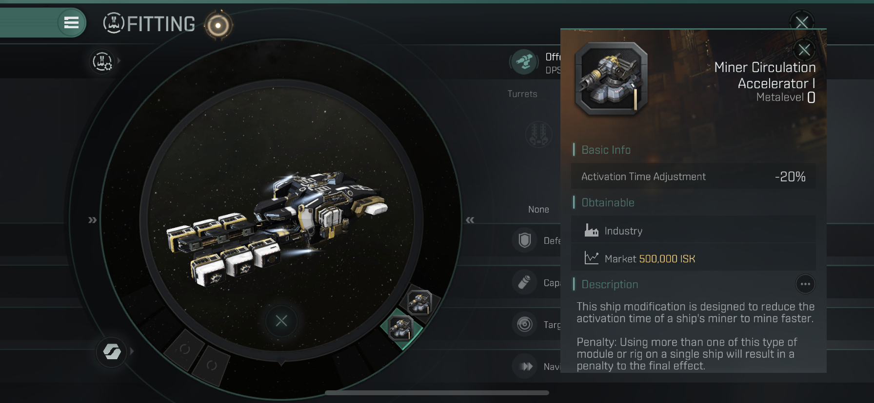 Rig에는 광물을 빠르게 캘수있는 Miner Circulation Accelertor를 2개 달아줍니다.