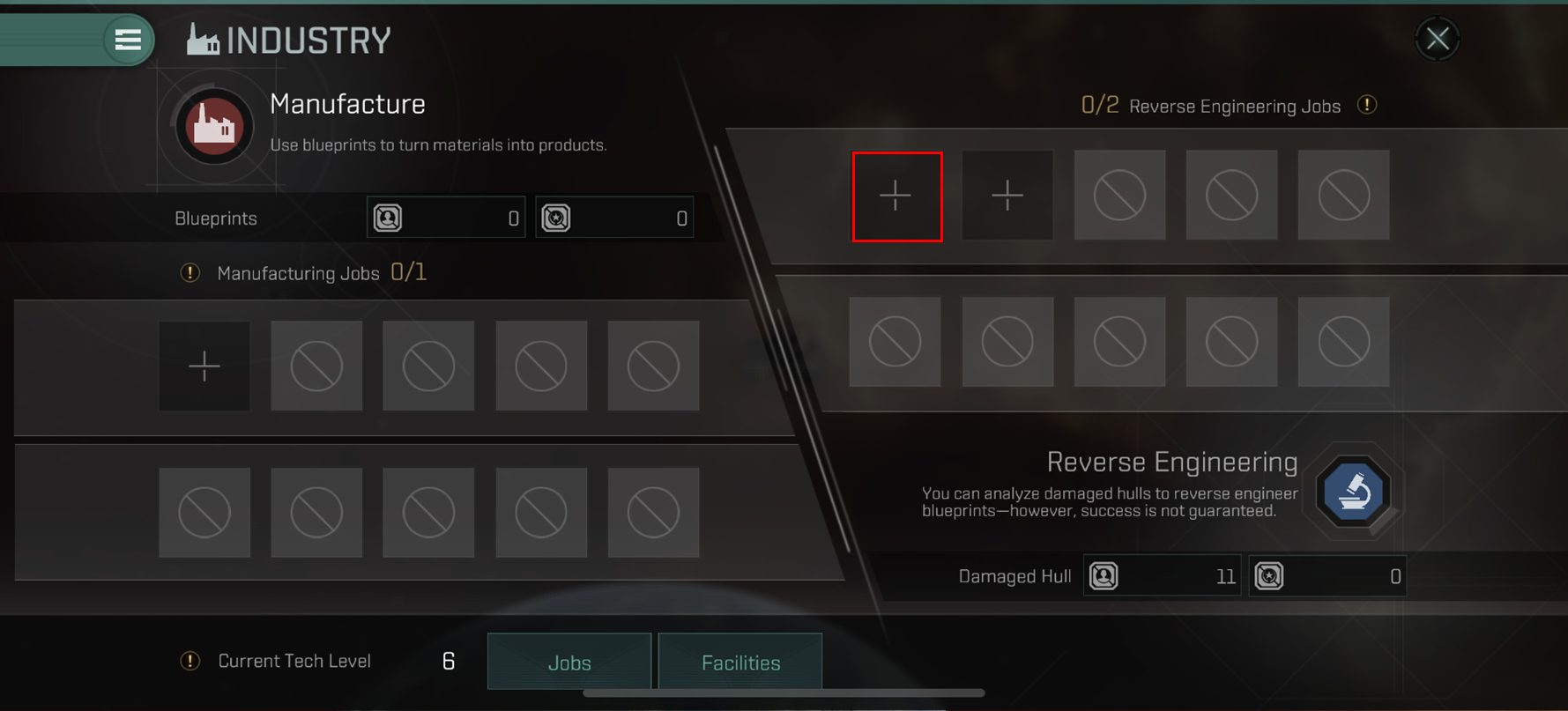 Industry 화면에서 Manufacture영역 왼쪽 중간 부분에 + 버튼을 클릭해 줍니다.