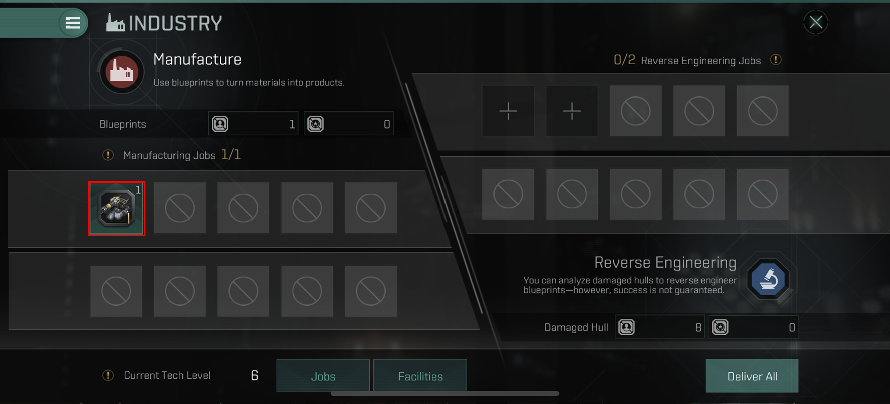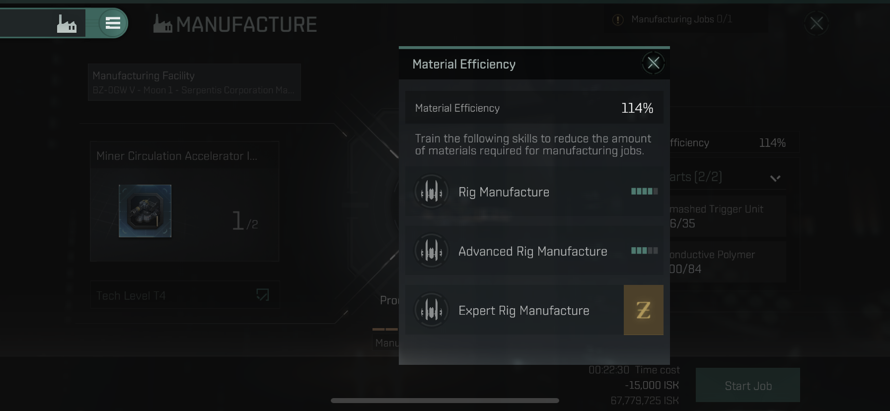 일단 Rig Manufacture 스킬을 올려 생산 효율성을 높여주었습니다.