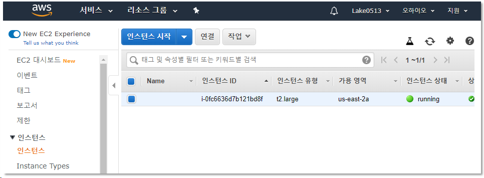 인스턴스가 생성된것을 확인하실 수 있습니다.