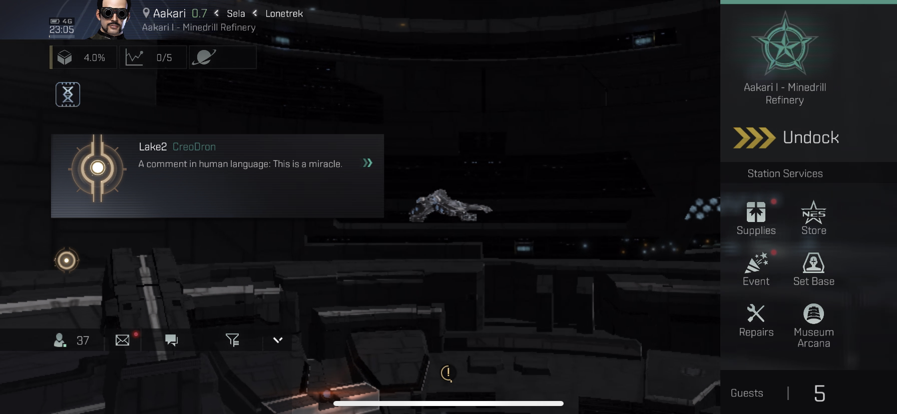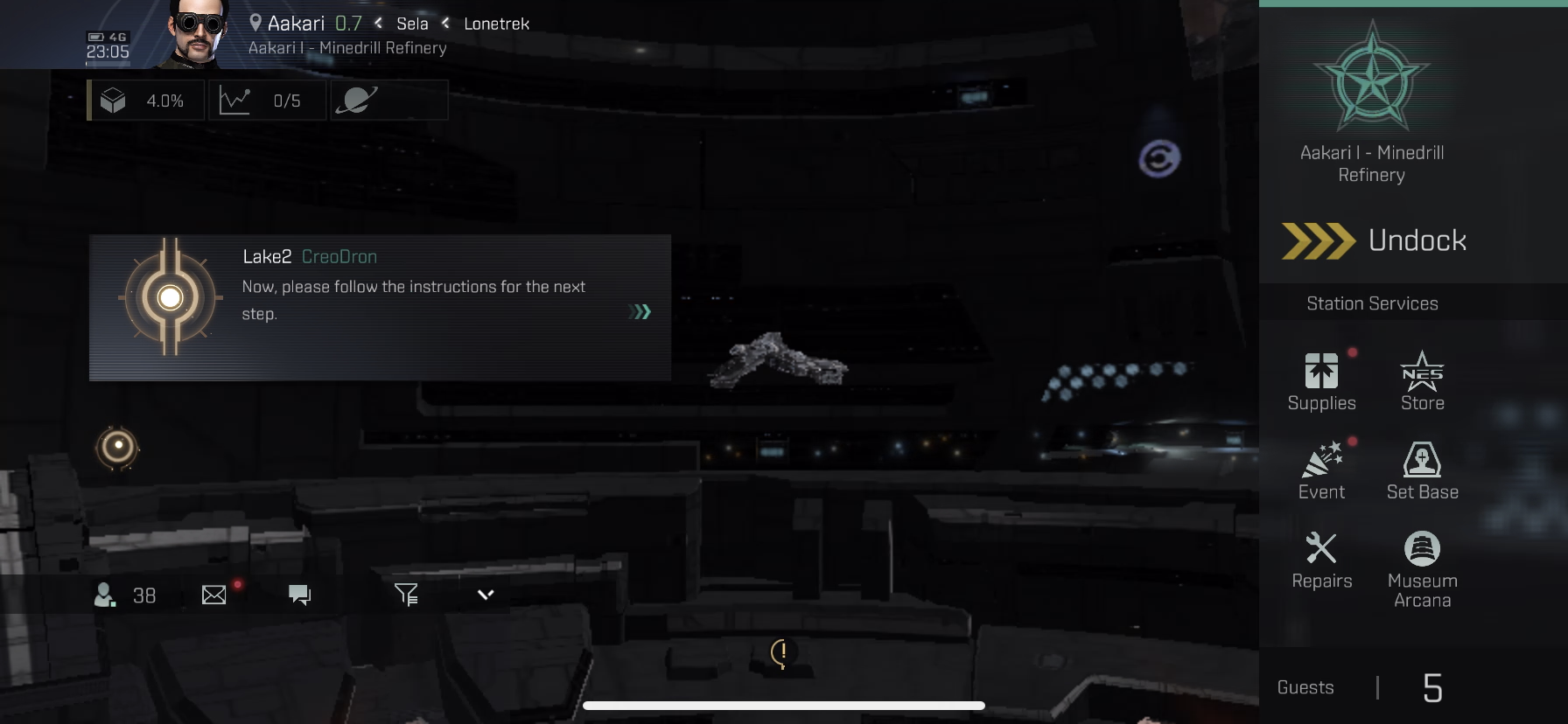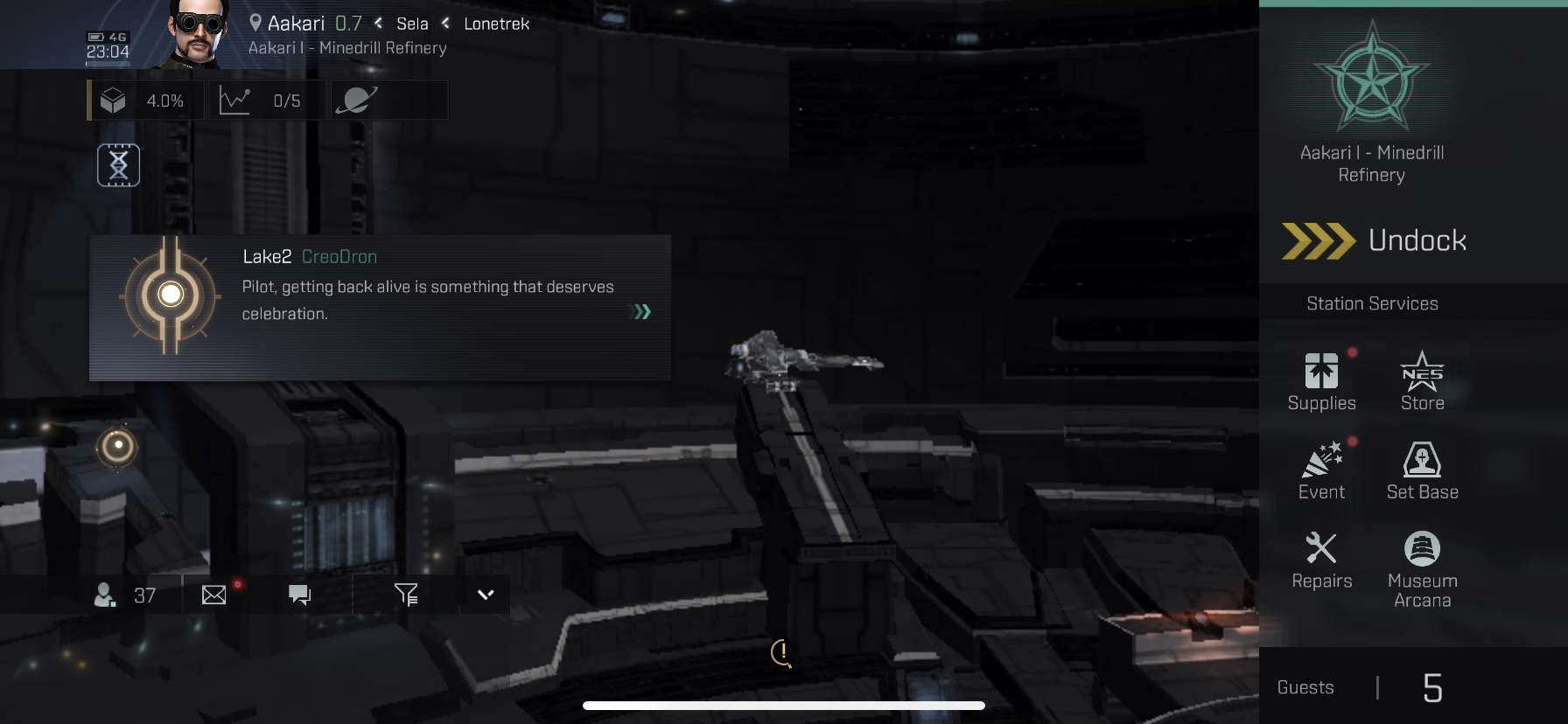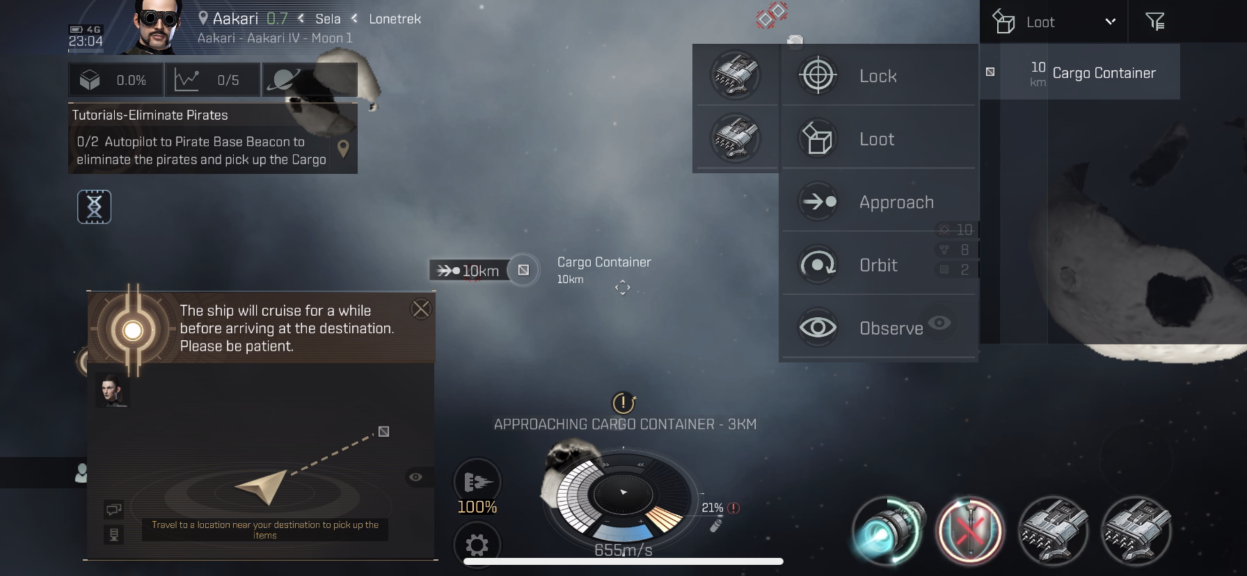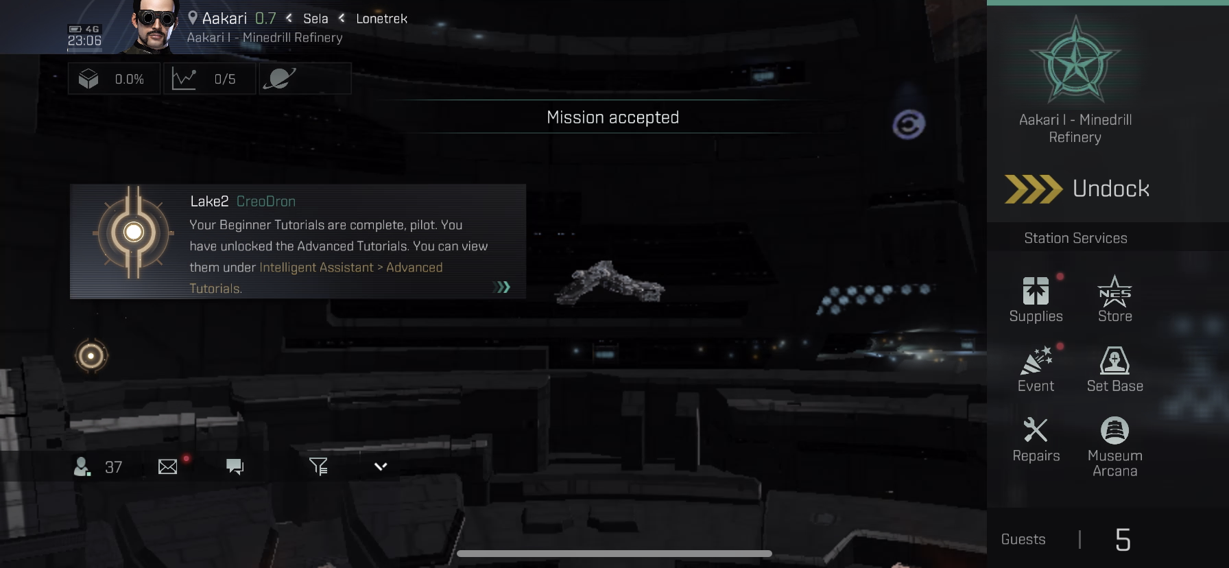 안전을 위해, Aakari I - Minedrill Refinery에 자동 조종 장치를 설치하고 도킹하십시오.
