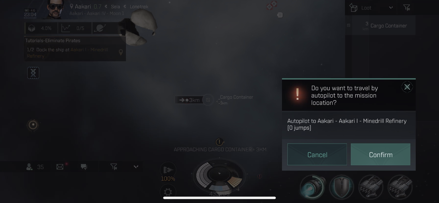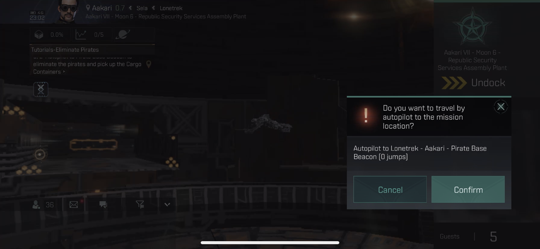 Undock과 autopilot을 할건지 물어보는군요 Confirm 버튼을 눌러줍니다.