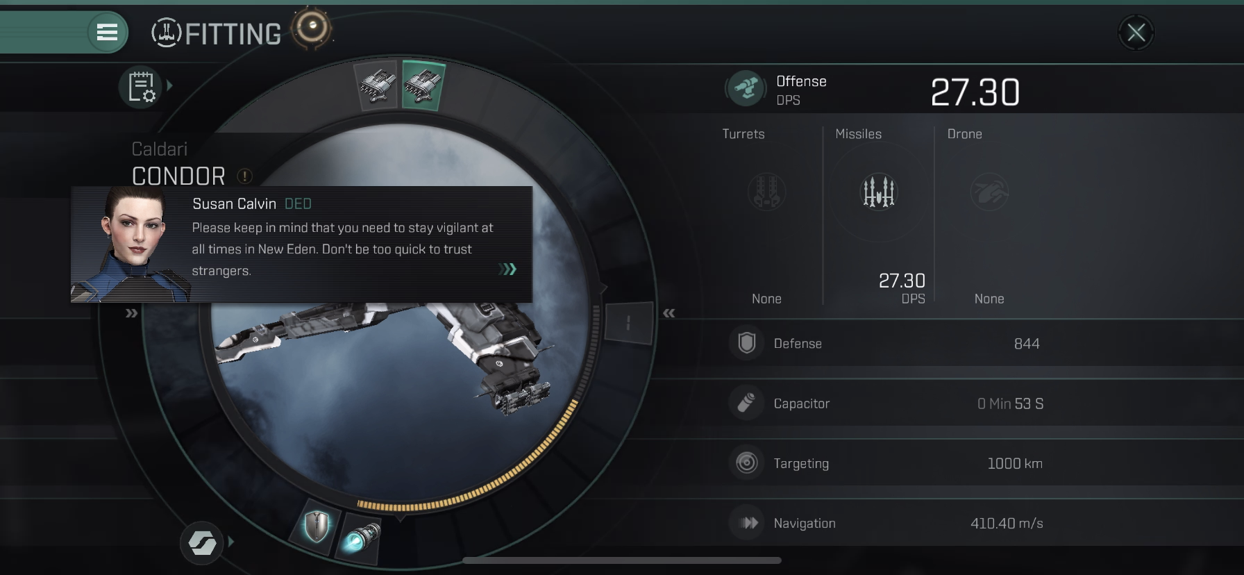 모든 조종사의 전투 데이터를 분석 한 후, CONCORD는 Condor가 초보자를 위한 최고의 함선이라고 결론 지었습니다.
