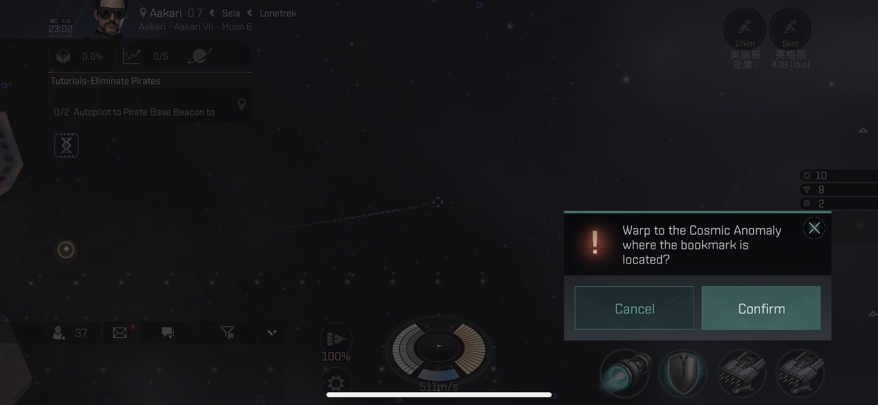 해당 지역에 도착하니 Anomaly로 워프할지 물어보는군요. Confirm 버튼을 클릭하여 워프합니다.