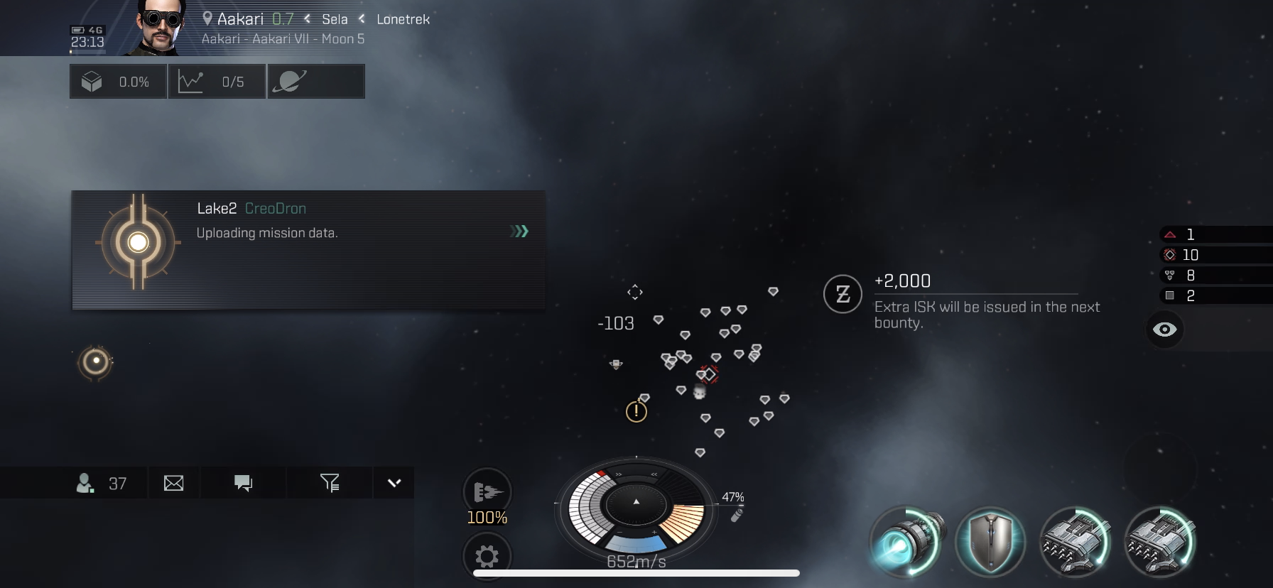 바운티에서 100000 ISK 획득