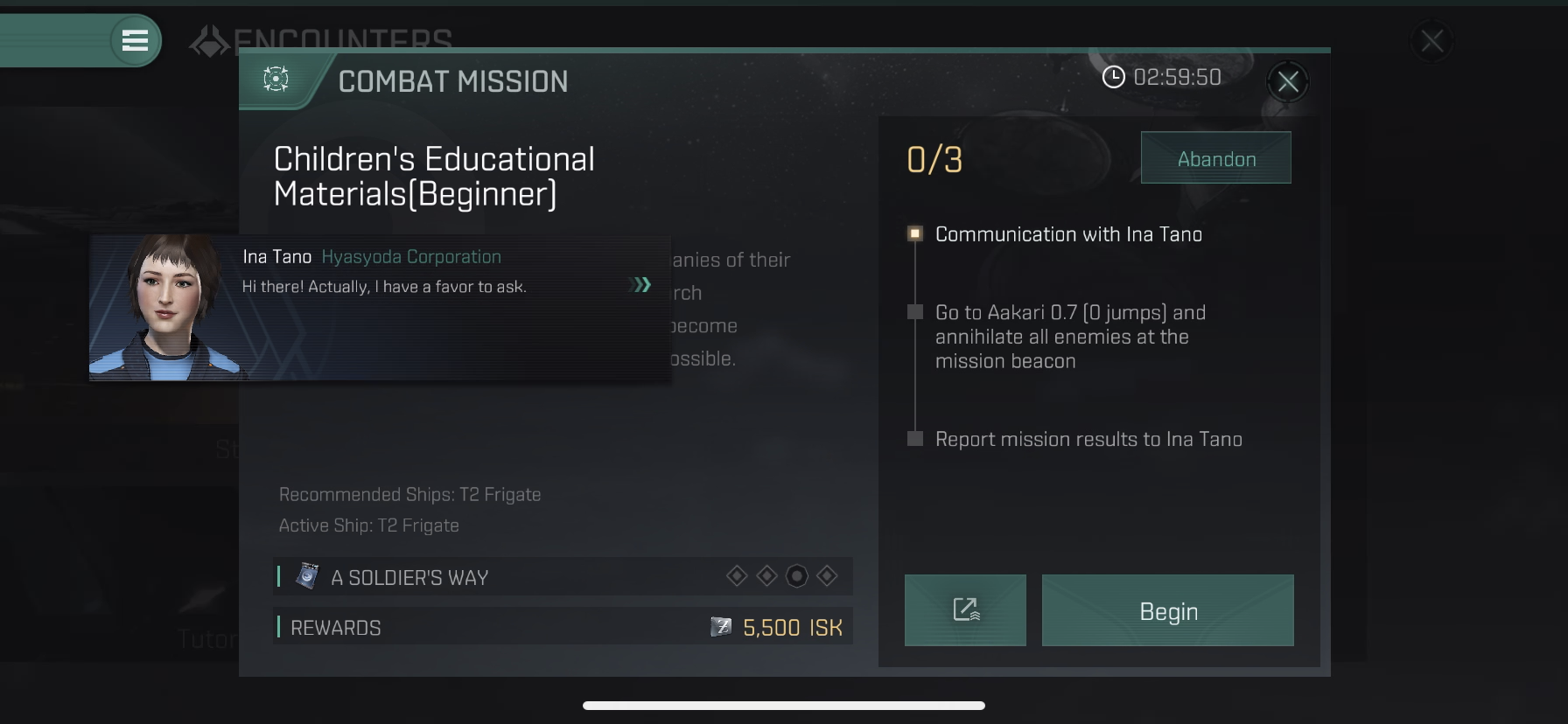 - Aakari 0.7 (0 jumps)로 이동하여 임무 표지에서 모든 적을 전멸