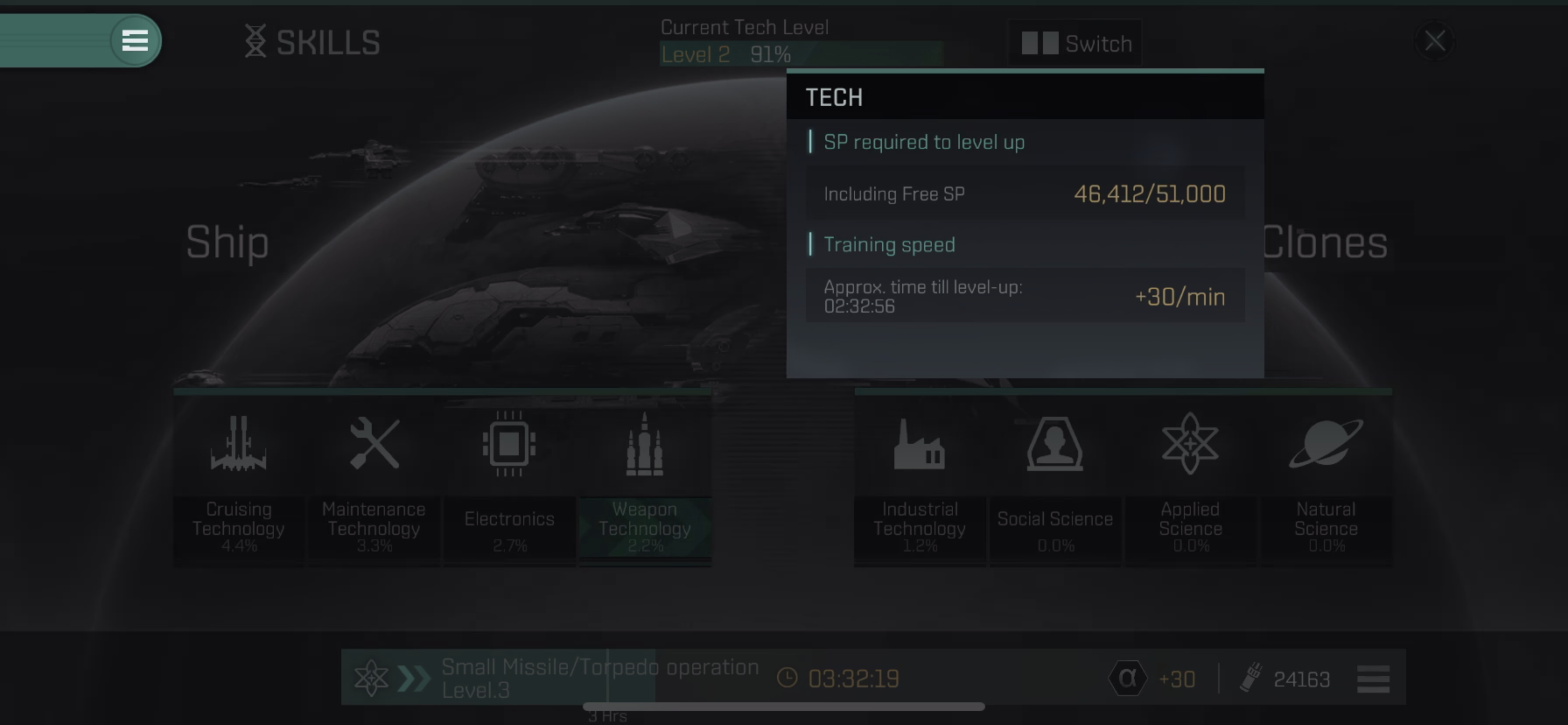 Tech Level 3이 되는데 02:32:56 남은것을 볼수있습니다.