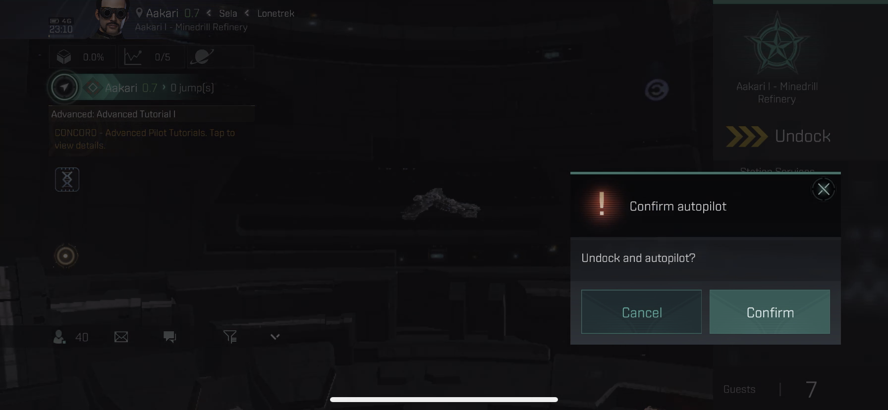 Undock과 autopilot을 할건지 물어보는군요 Confirm 버튼을 눌러줍니다.
