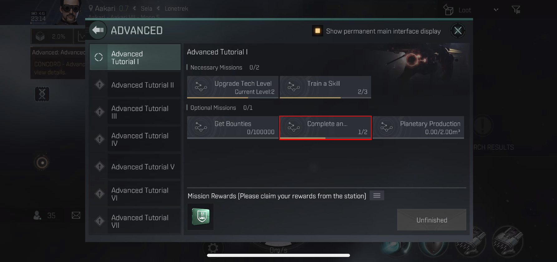 임무 세부 사항을 보려면 Advanced Tutorial 페이지를 열고 아이템을 완성하기 위해 최선을 다하십시오.