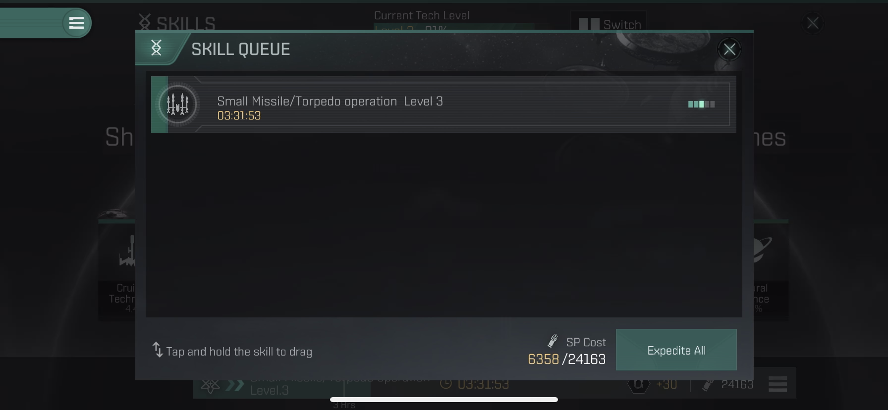 기초 튜토리얼에서 Small Missile/Torpedo operation의 스킬을 Level 2에서 Level 3으로 올려준것처럼