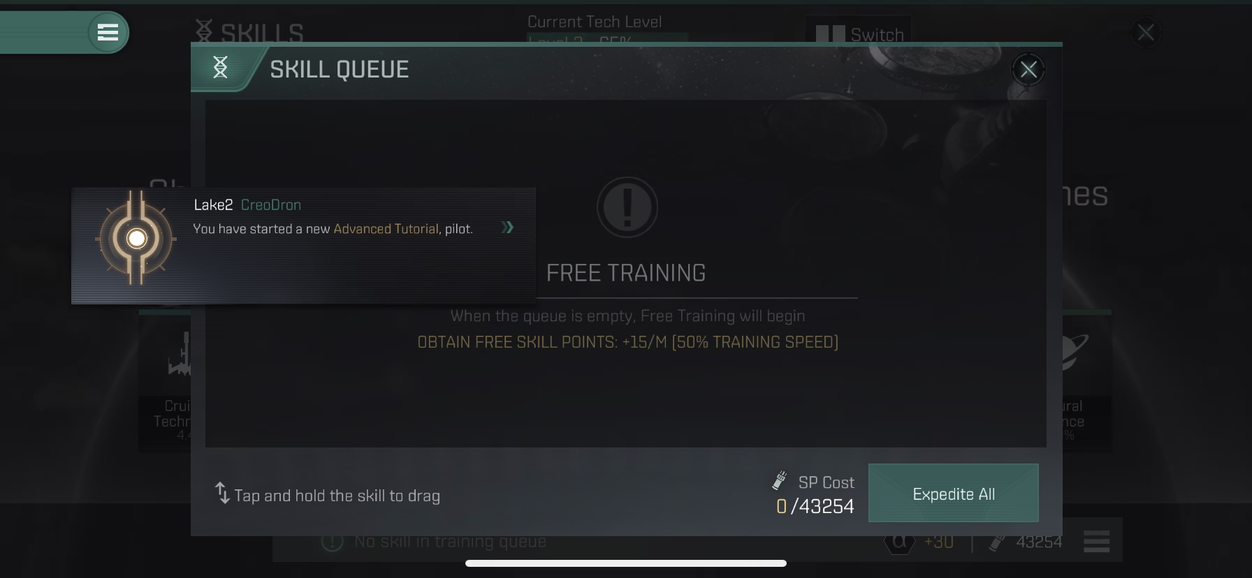 콥을 가입하게되면 미션이 완료되어 50만 스킬 포인트를 받아 Current Tech Level의 노란색바가 번쩍이는게 보이실거에요.