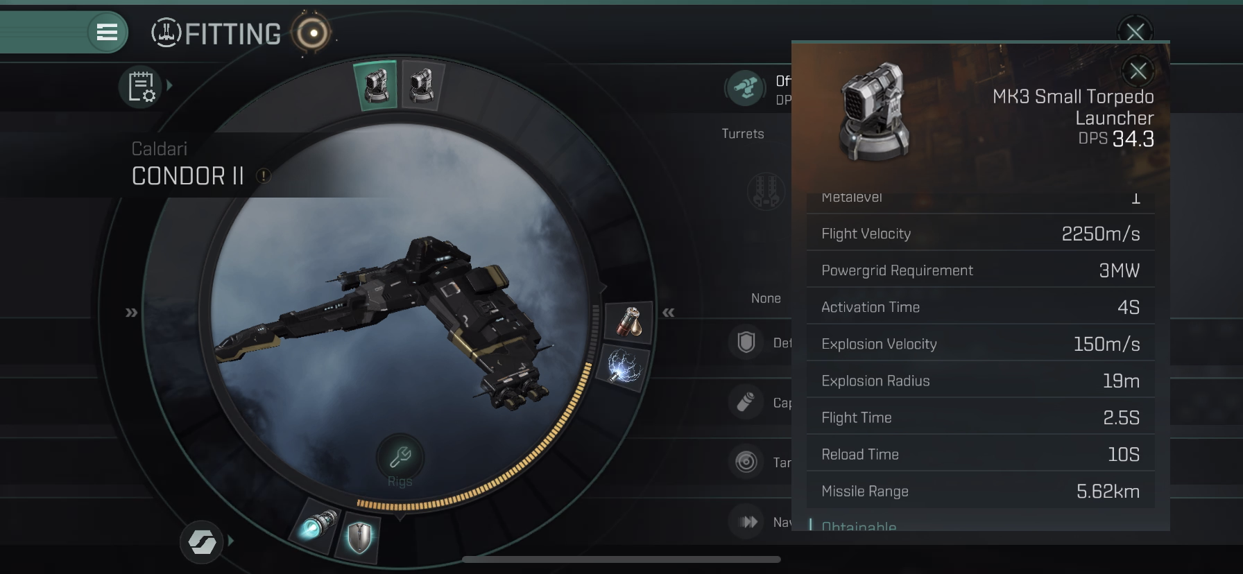 High Slot에는 MK3 Small Torpedo Launcher 2개를 장착하였습니다.