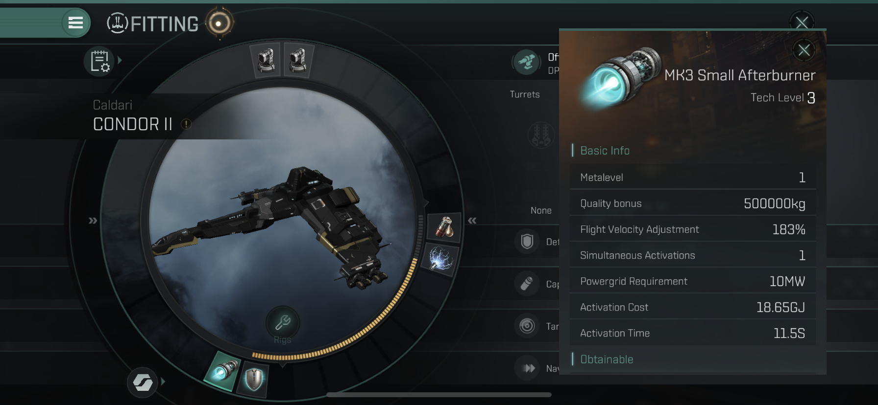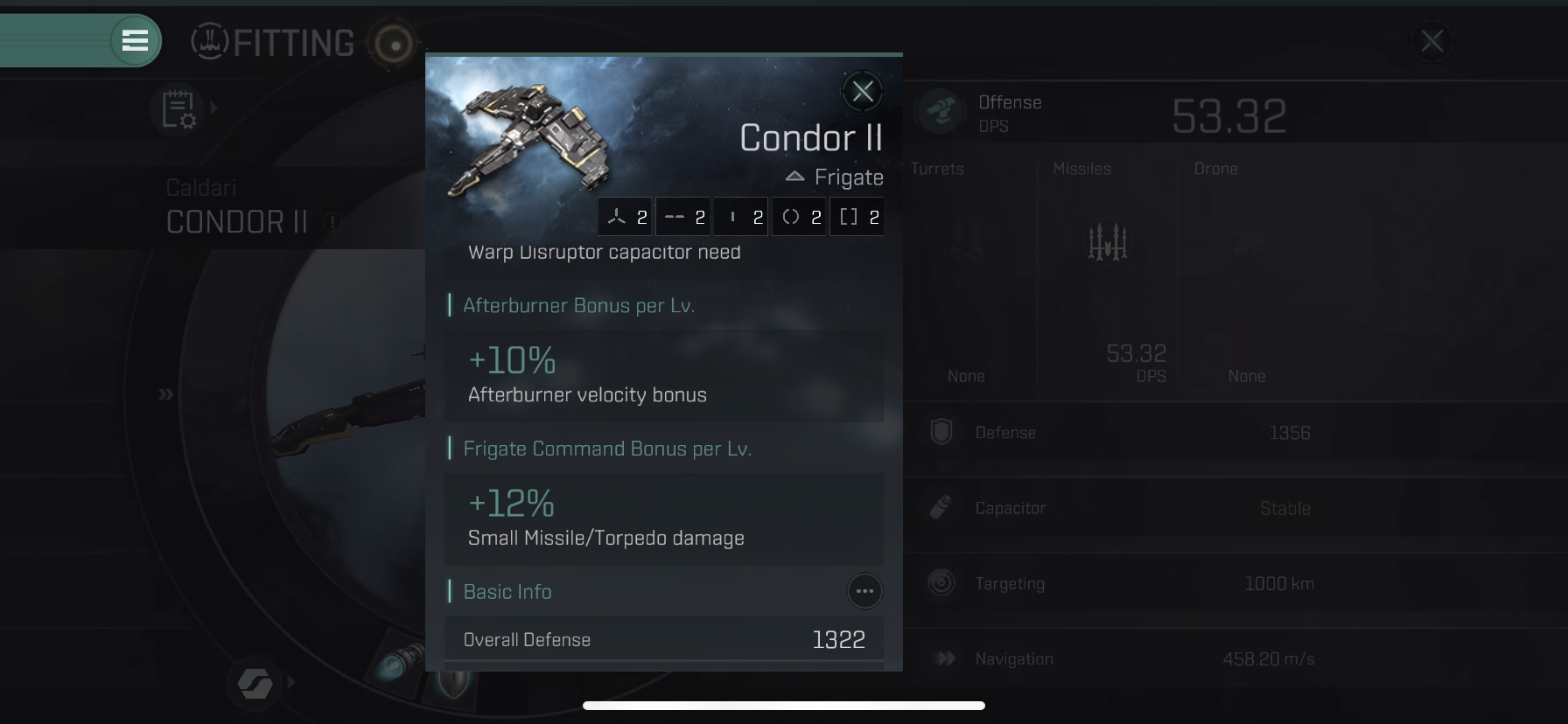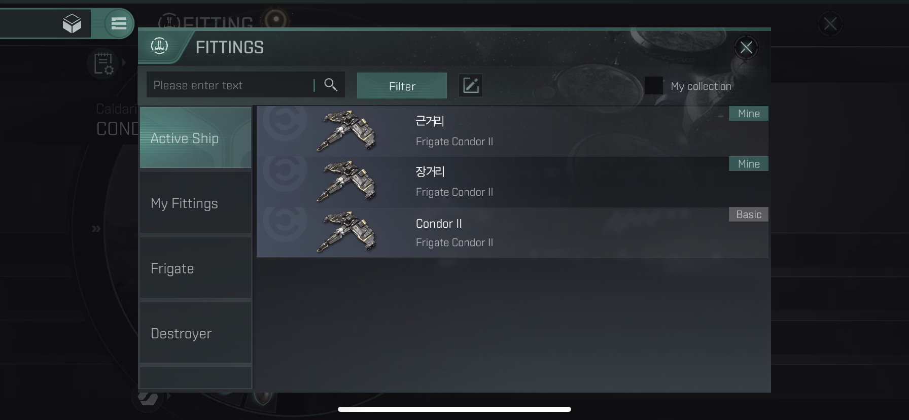Condor II는 인터셉터 함선으로 속도 관련 함선 보너스가 있어서 스피드 탱킹이 됩니다.