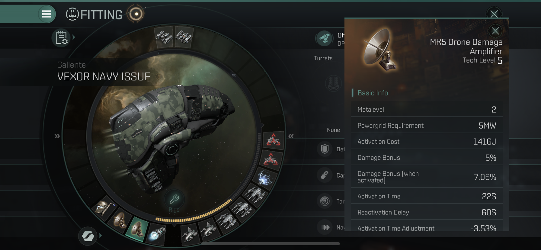 Low Slot 두 번째에는 MK5 Drone Damage 2개를 장착하였습니다.