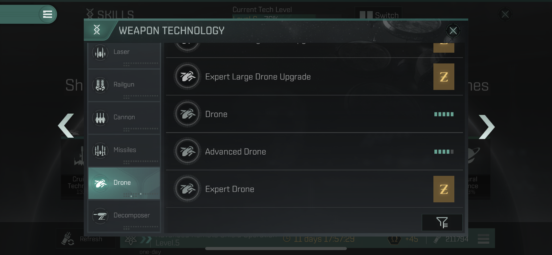 드론쉽을 사용하기 위해서는 필수로 찍어야 하는 스킬이 존재합니다.