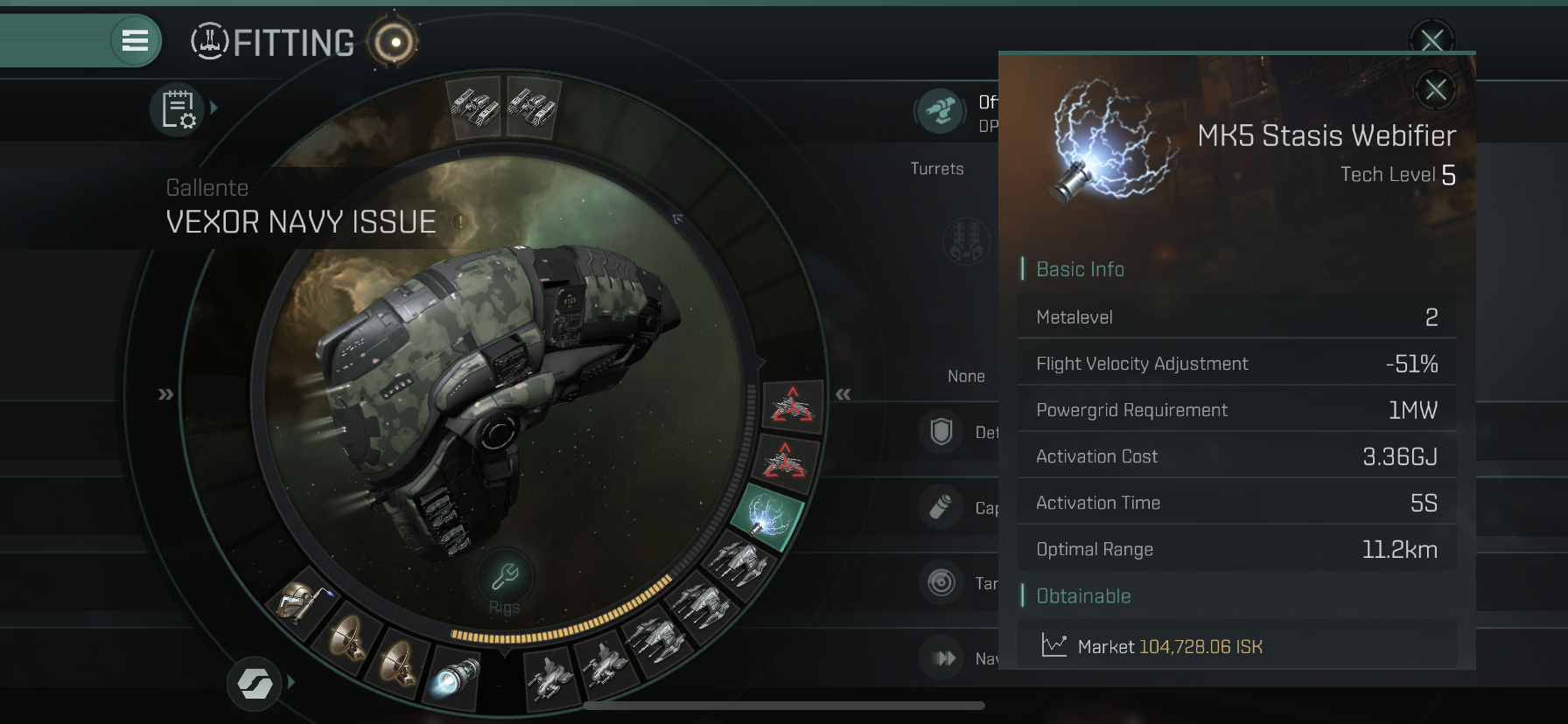 세 번째 Mid Slot에는 MK5 Stasis Webifier를 장착하였습니다.