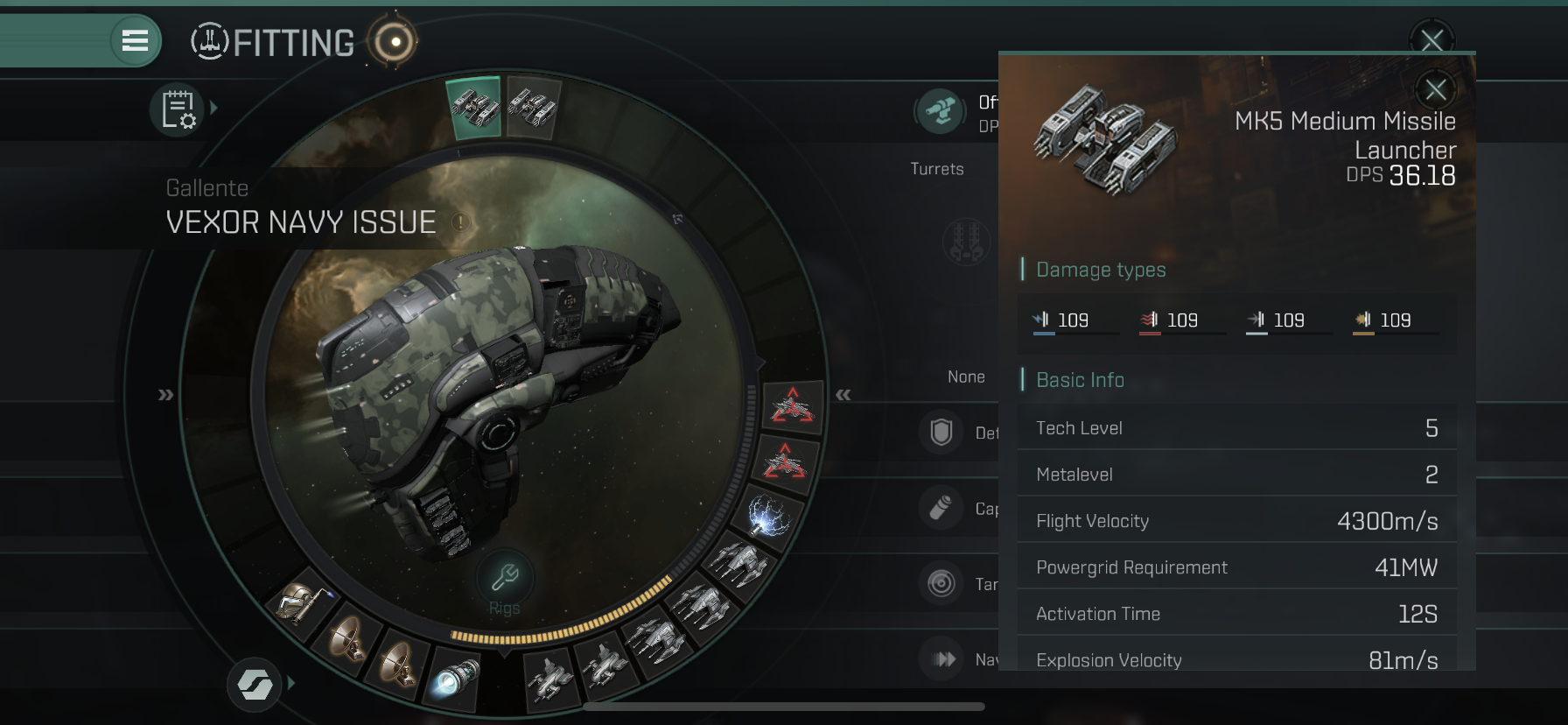 High Slot에는 MK5 Medium Missile Launcher 2개를 장착해줍니다.