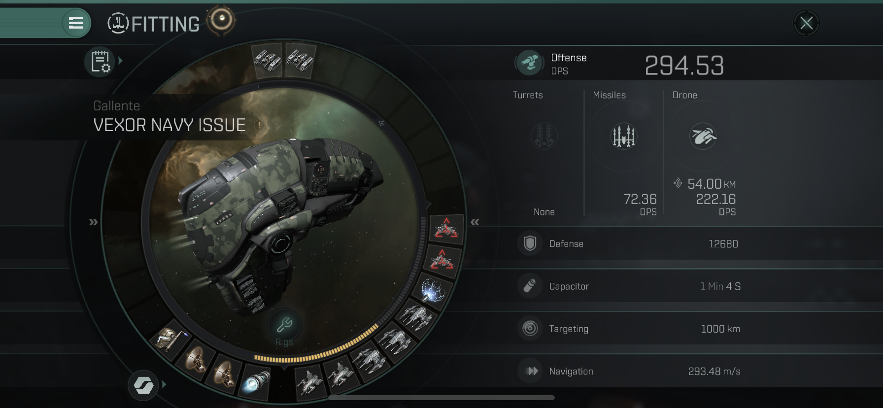 마지막으로 Rig에는 드론 사거리를 늘려주는 리그 두 개를 장착하였습니다.