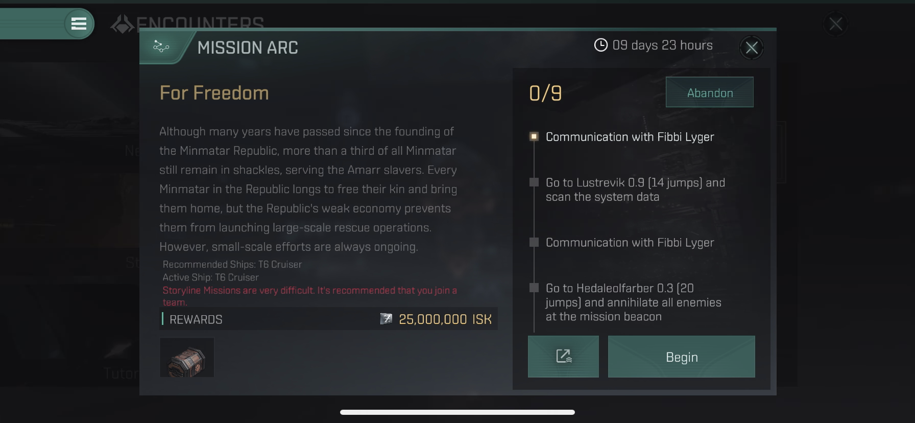 Accept Mission을 클릭하고 나서 Encounters에 가보면 위와 같이 For Freedom 미션이 생긴 것을 확인하실 수 있습니다.
