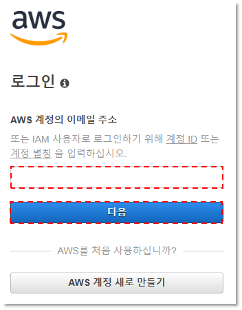 AWS 사이트에 접속하여 콘솔 로그인을 합니다.