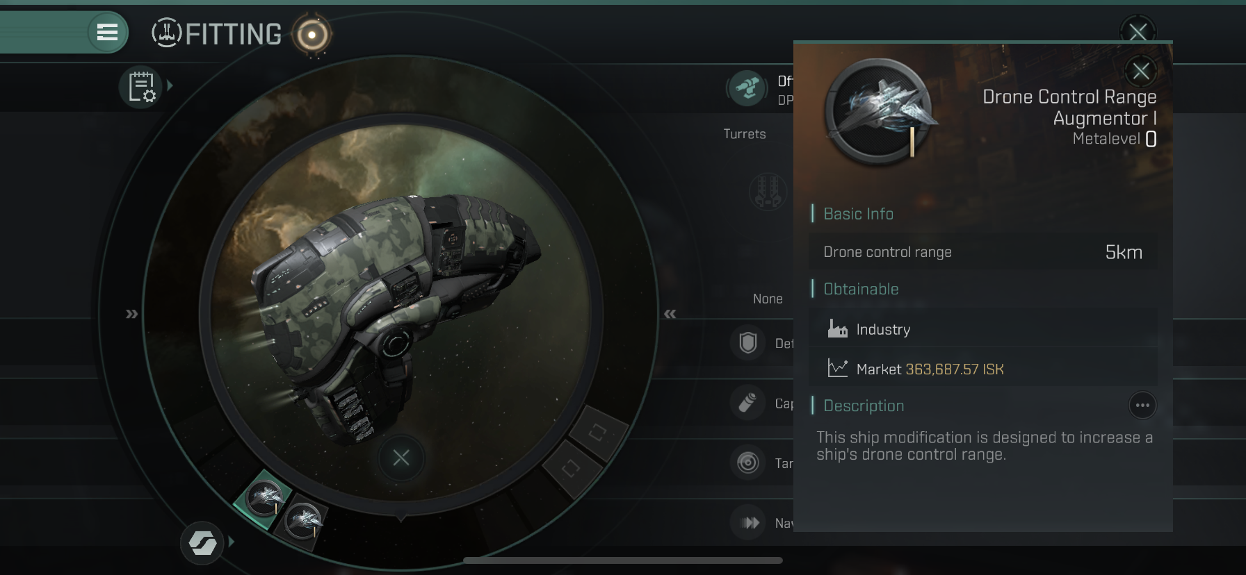 마지막으로 Rig에는 드론 사거리를 늘려주는 리그 두 개를 장착하였습니다.