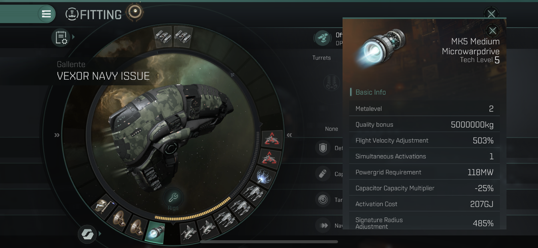 Low Slot 첫 번째에는 MK5 Microwarpdrive를 장착하였습니다.